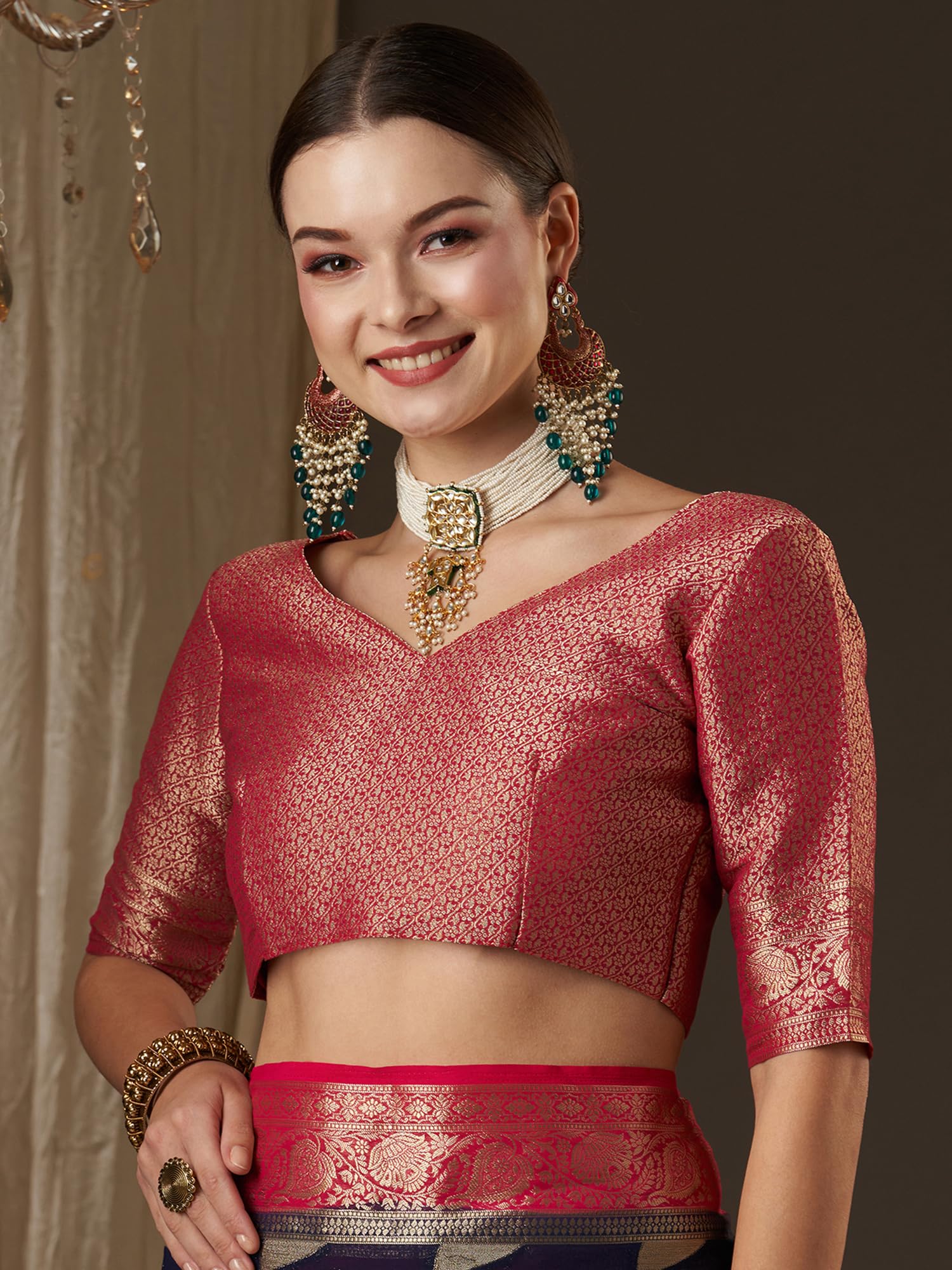 • Saree Color : Navy Blue || Blouse Color : Pink