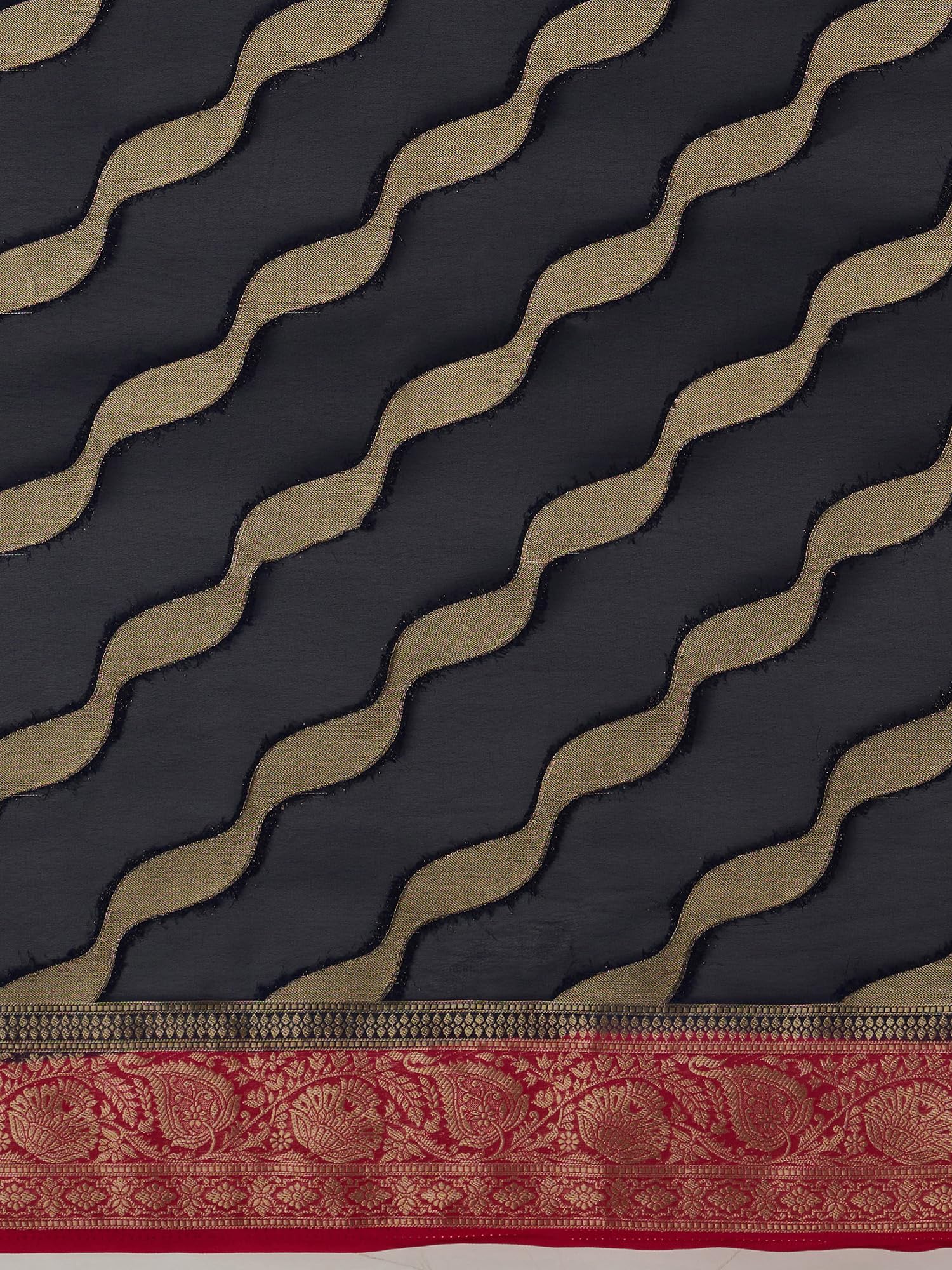 AKHILAM Women’s Woven Design Abstract Georgette Kanjeevaram Saree With Unstiched Blouse Piece (Navy Blue_ARYA4002_FL)