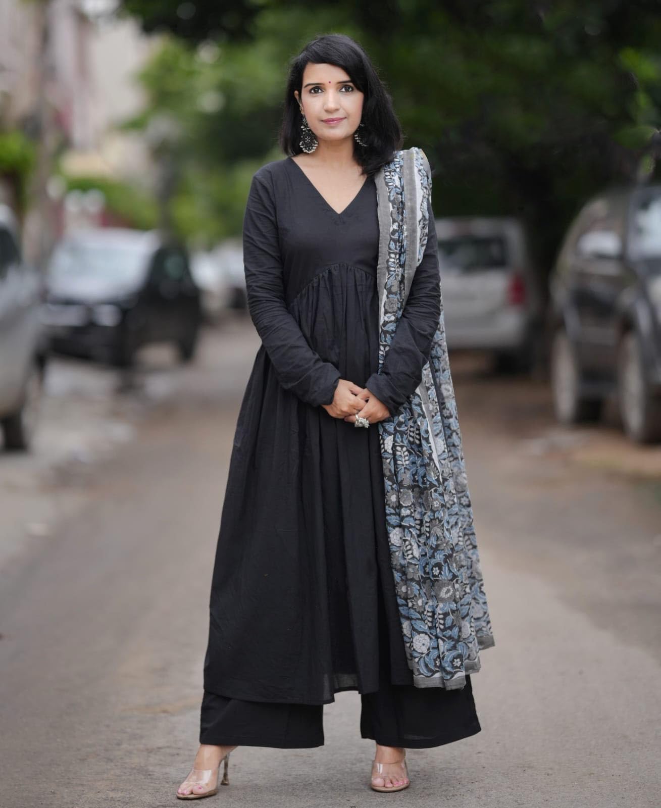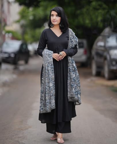 Alvami Women’s Viscose Solid Regular Kurta Set (Mausam_Black_01