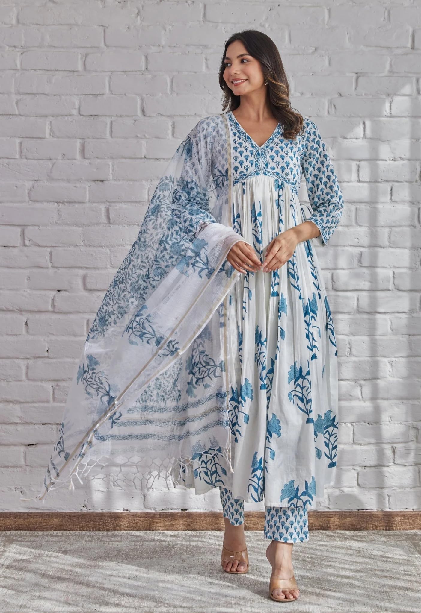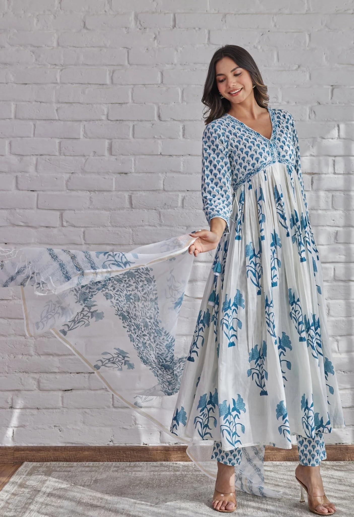 - Style: Anarkali || Length: Calf Length || Sleeves: 3/4 Sleeves || Size Chart- Kurta-S-36 in, M-38 in , L-40 in , XL-42 in , XXL-44 in,Pant :- S-28 in, M-30 in , L-32 in, XL- 34 in , XXL- 36 in,For More Please refer to the size Chart below.