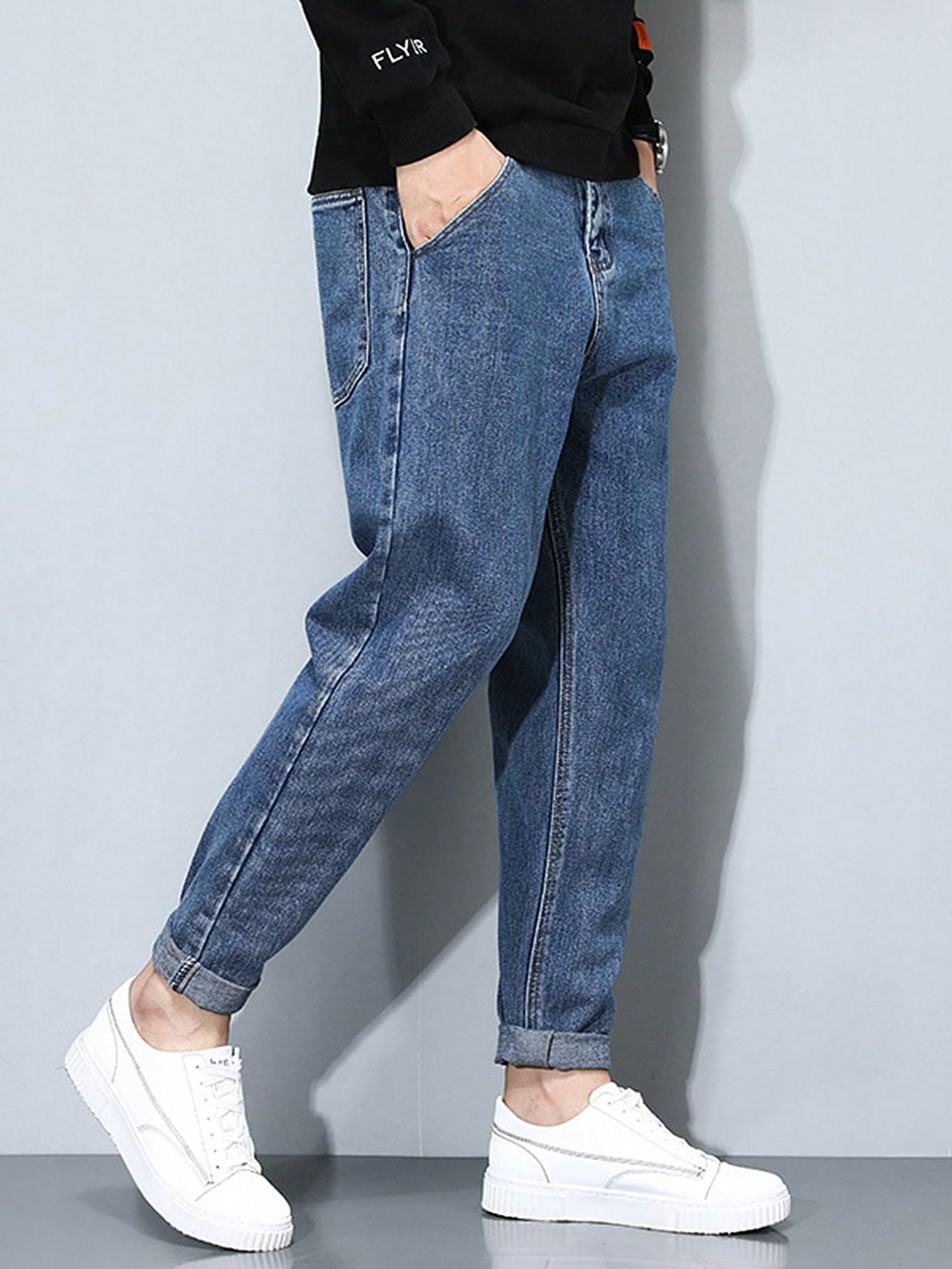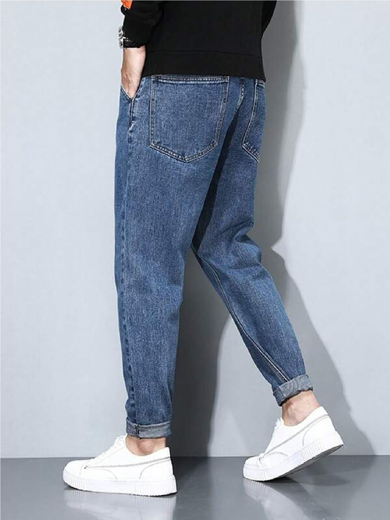 - (Relaxed Waist and Thighs): This carrot or Tapered fit men jeans is more relaxed fit around the waist and upper thighs, providing comfort in these areas.