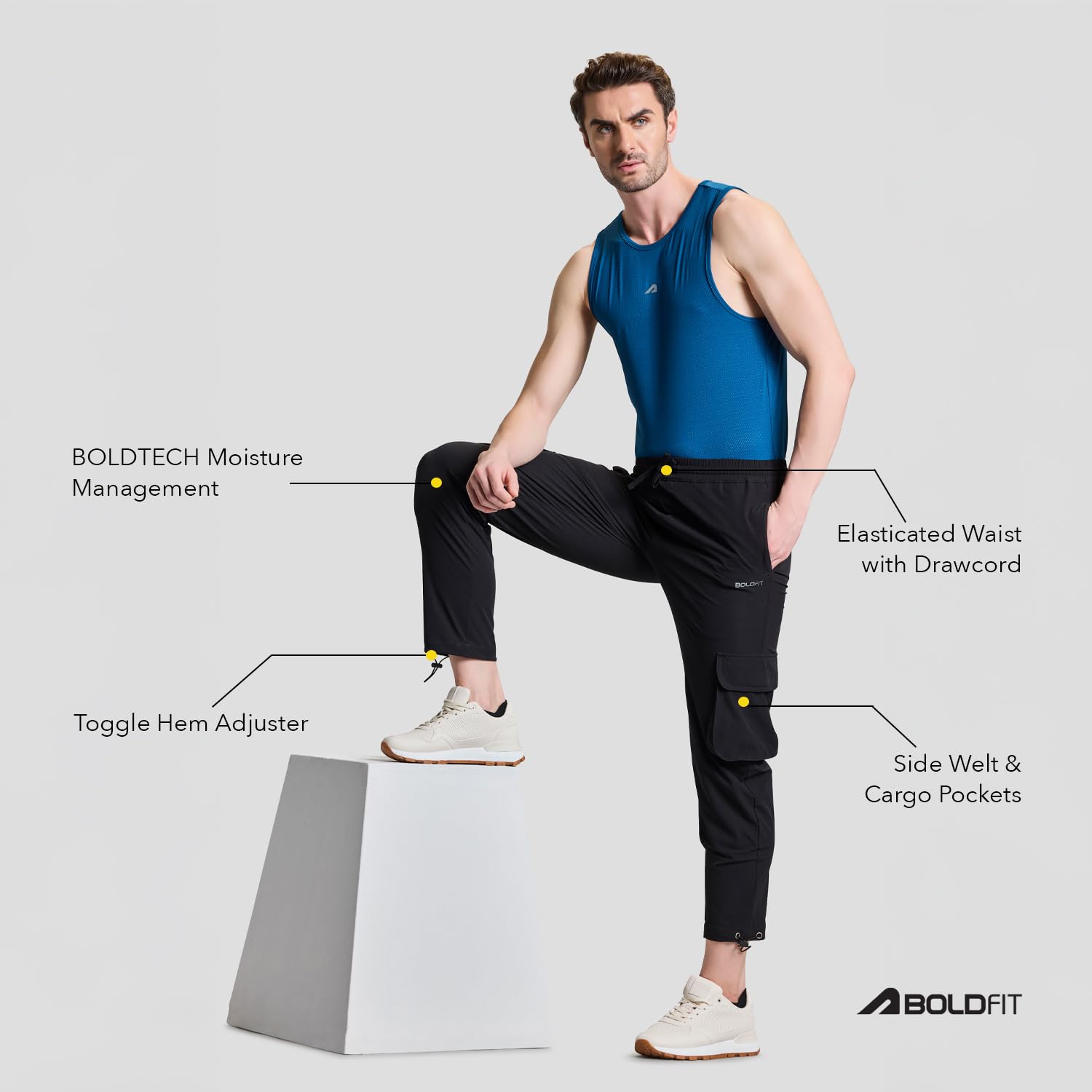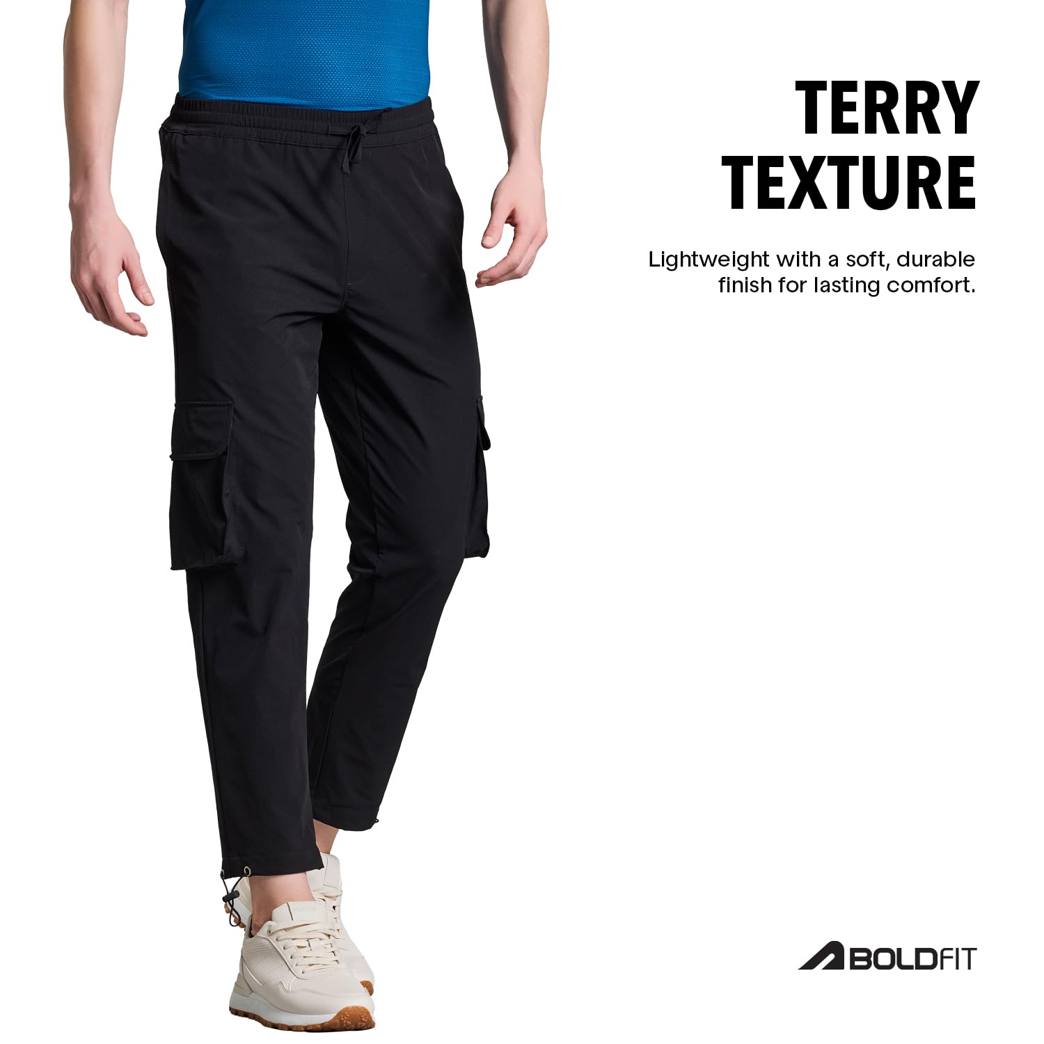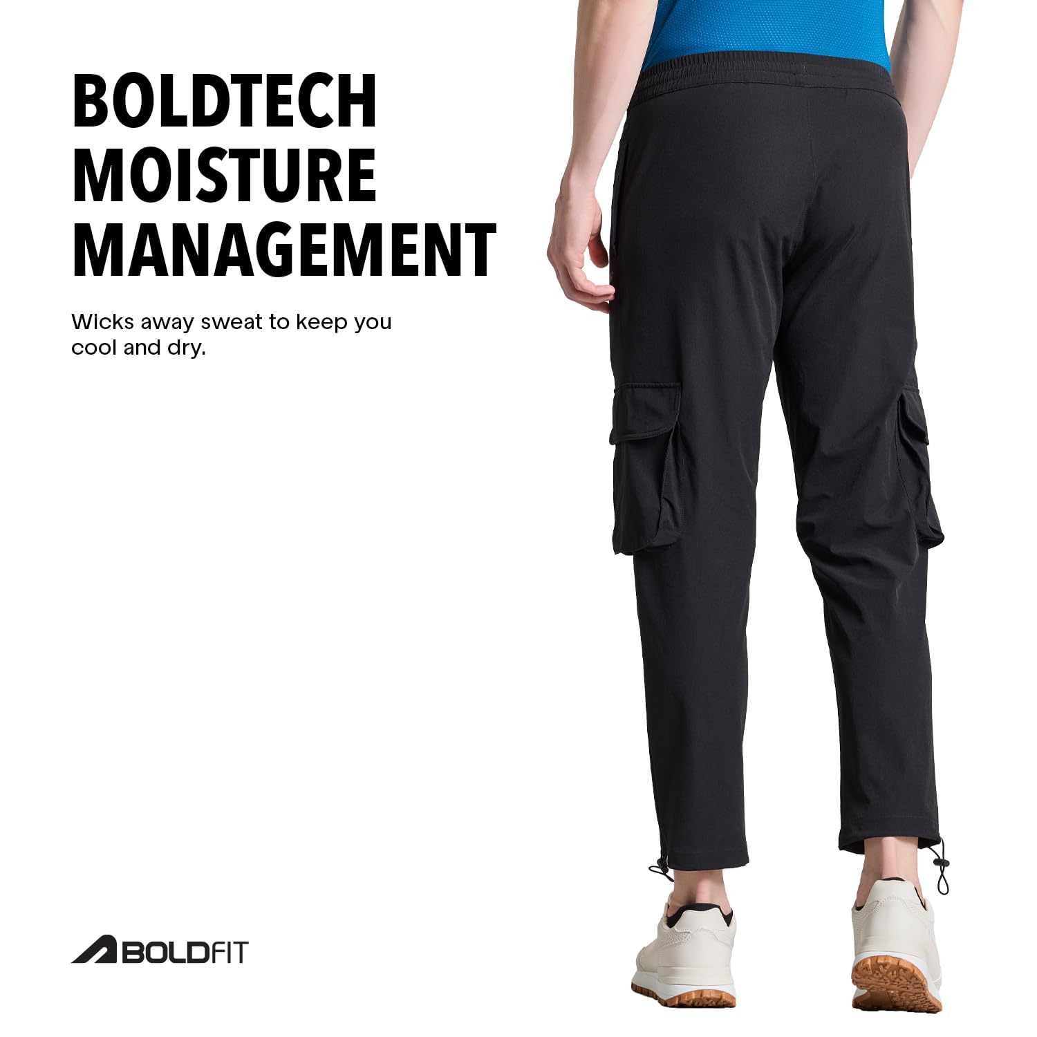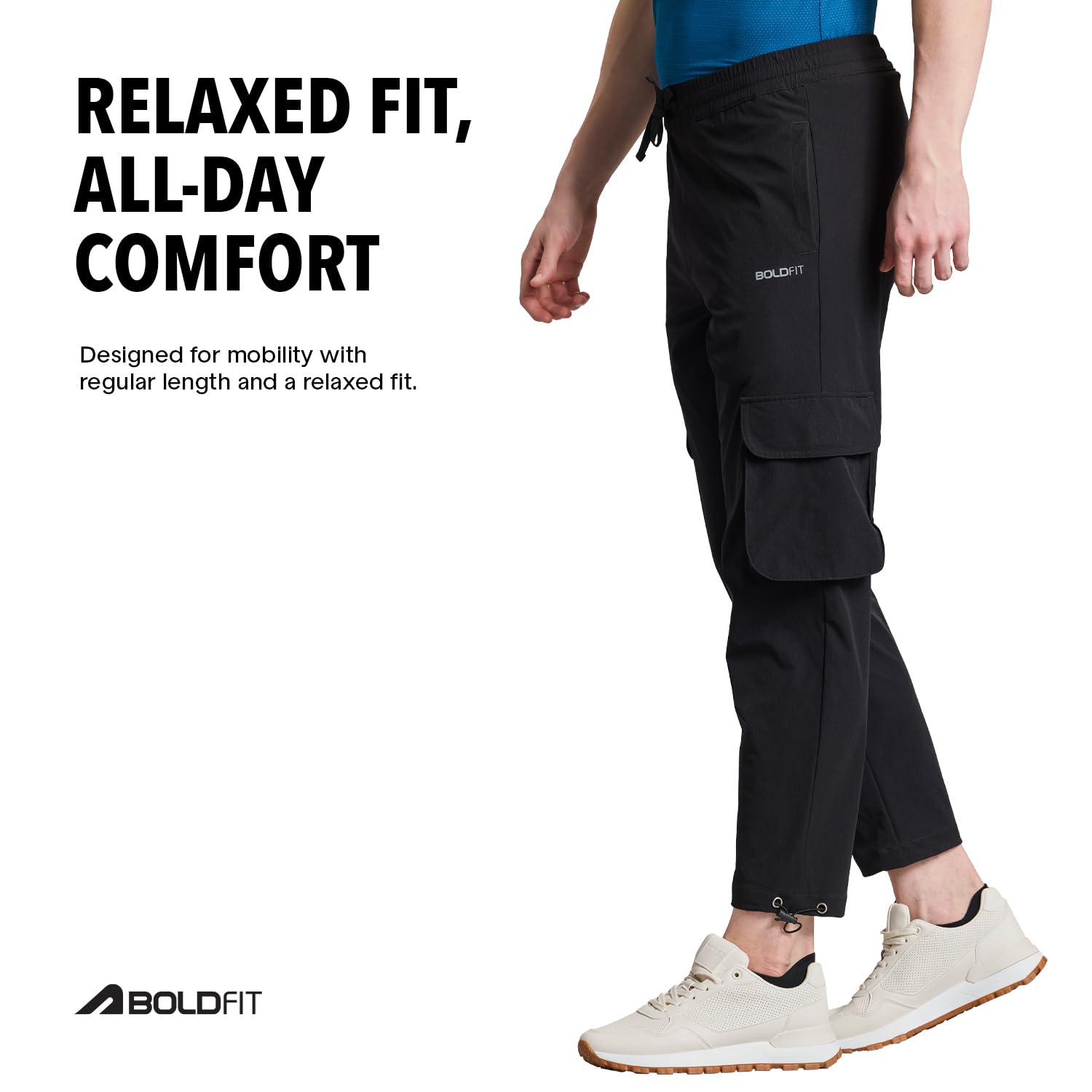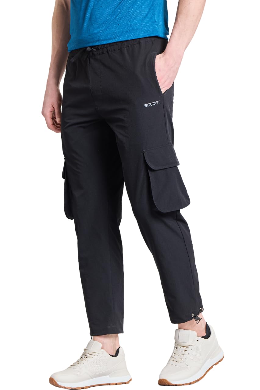 Boldfit Cargo for Men Solid Cargo Pants for Men & Boys Casual Wear Cargo Pants for Boys Regular Fit Cargos for Men Stylish Mens Cargo Trousers for Men, Lowers for Men Cargo Pants for Man – Black M