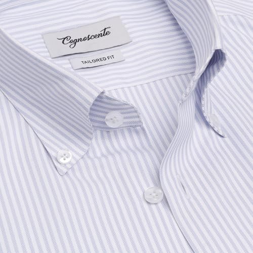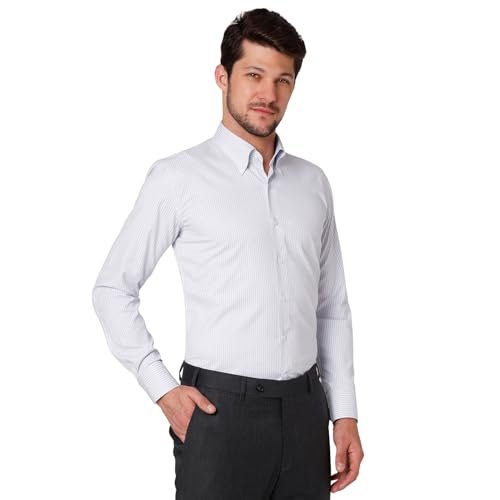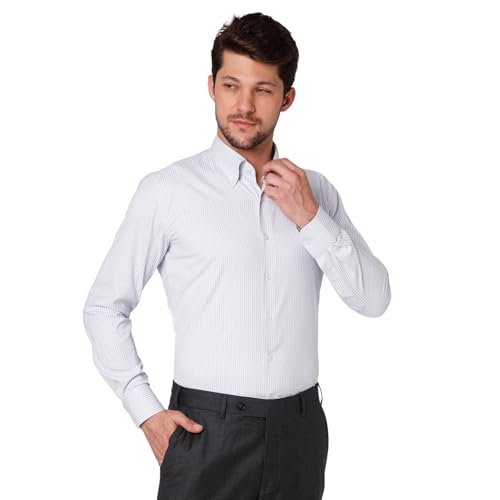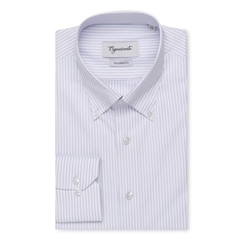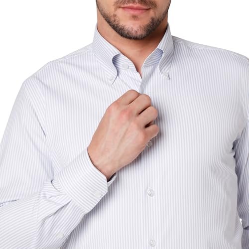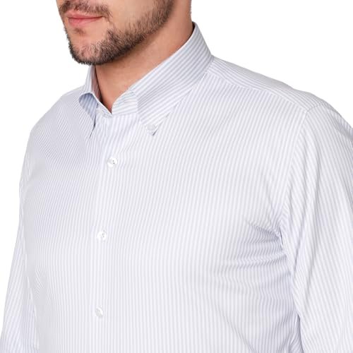 Cognoscente Men’s Stripes Cotton Shirt | Full Sleeve | Tailored Fit Summer Casual Formal Wear | Soft Breathable Fabric Light Grey