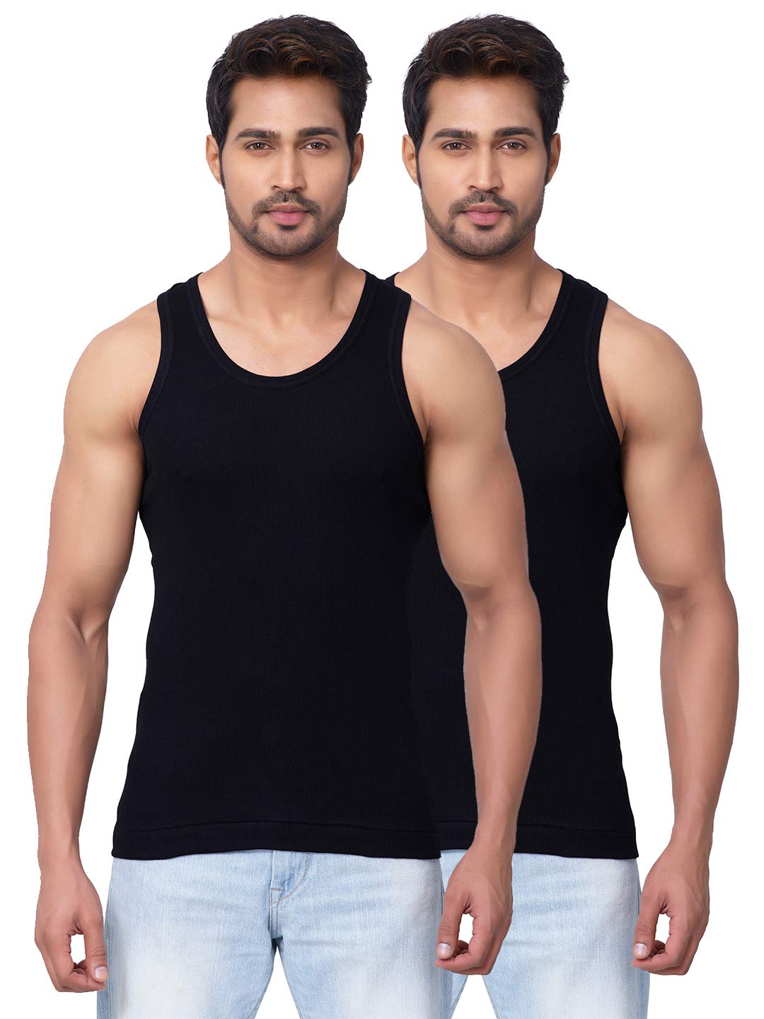 Dixcy Scott Cotton Originals Men’s Round Neck Sleeveless Body Fit Solid Regular Fit Vest – Victory Vest(Black And Black – Pack Of 2 )-Large