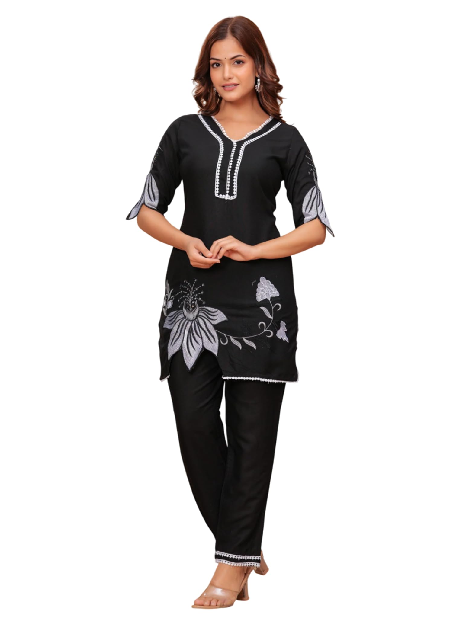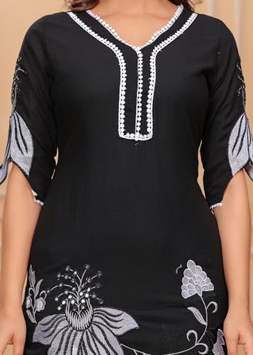 FABNEX kurta set for women | Women Kurta | Women Kurta Sets Kurtis | Women Kurta Pant Set | Women Kurta Pant Set Women (K-115-Black-XL)