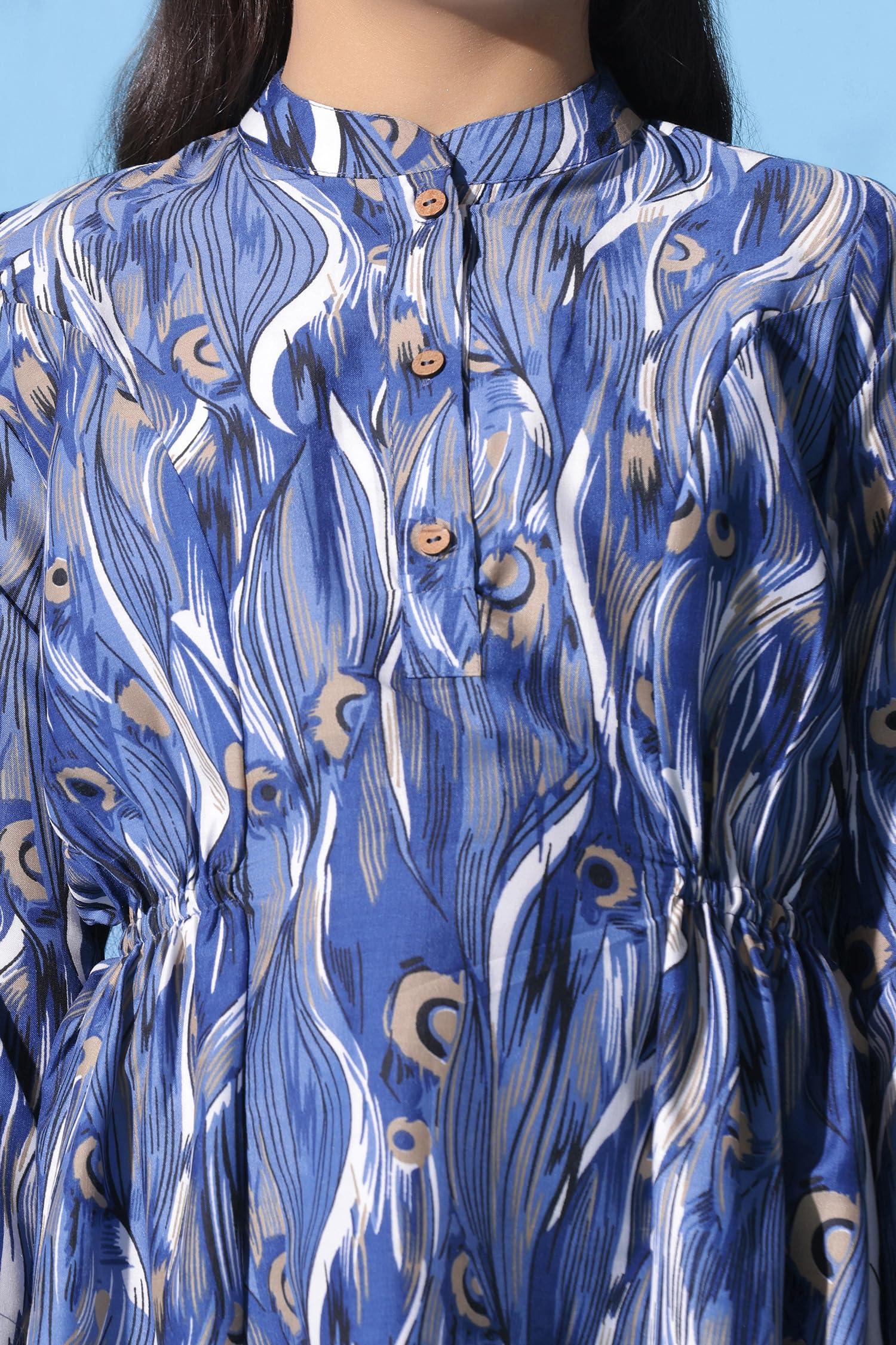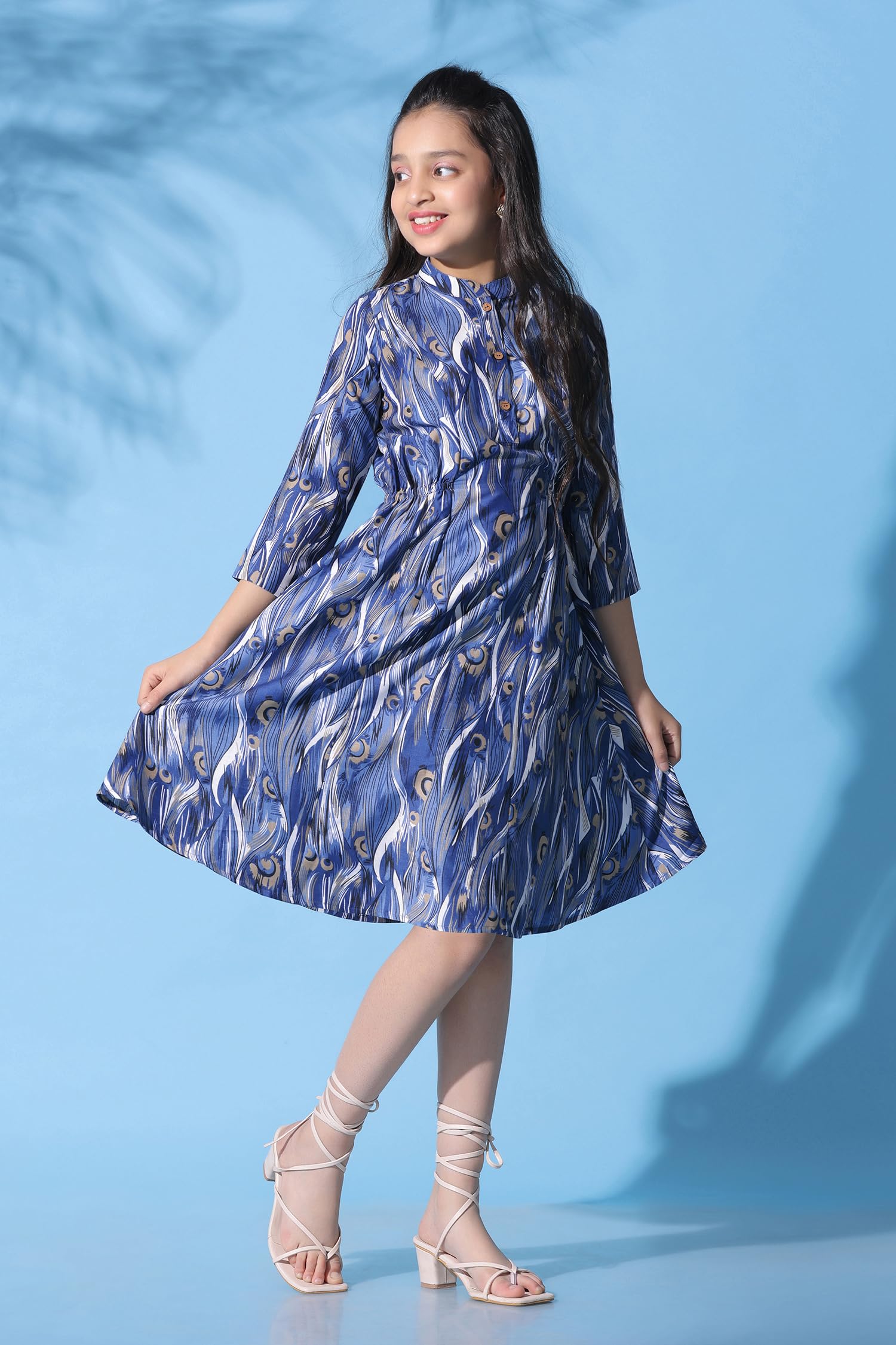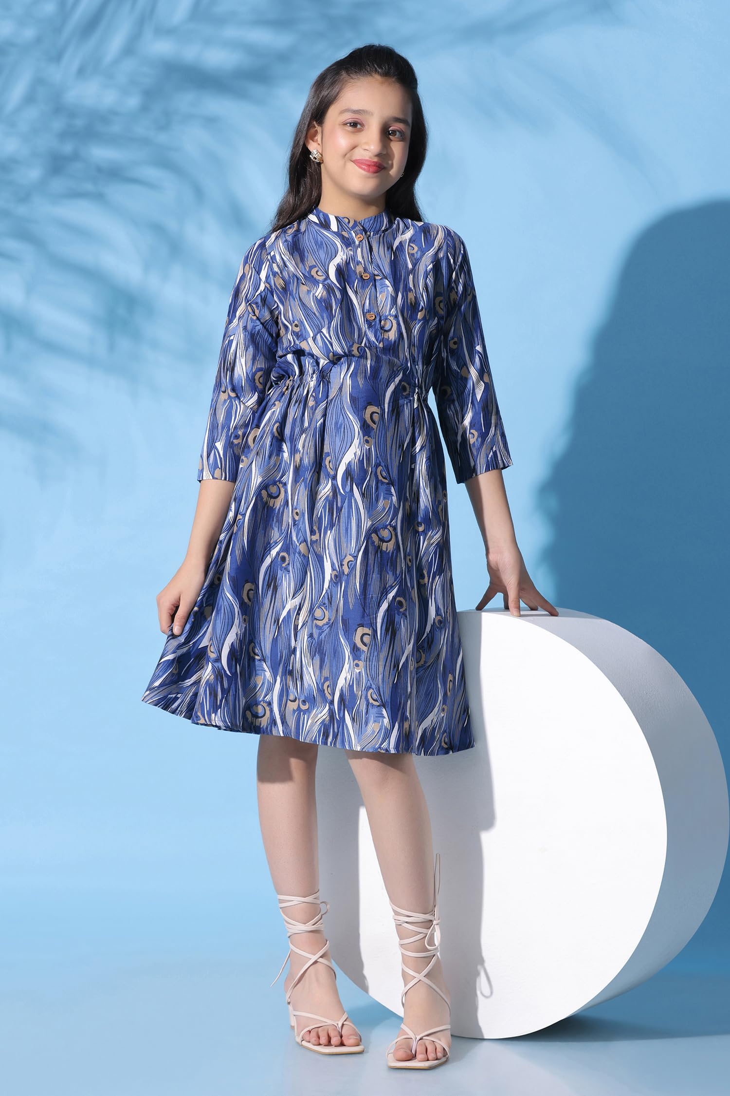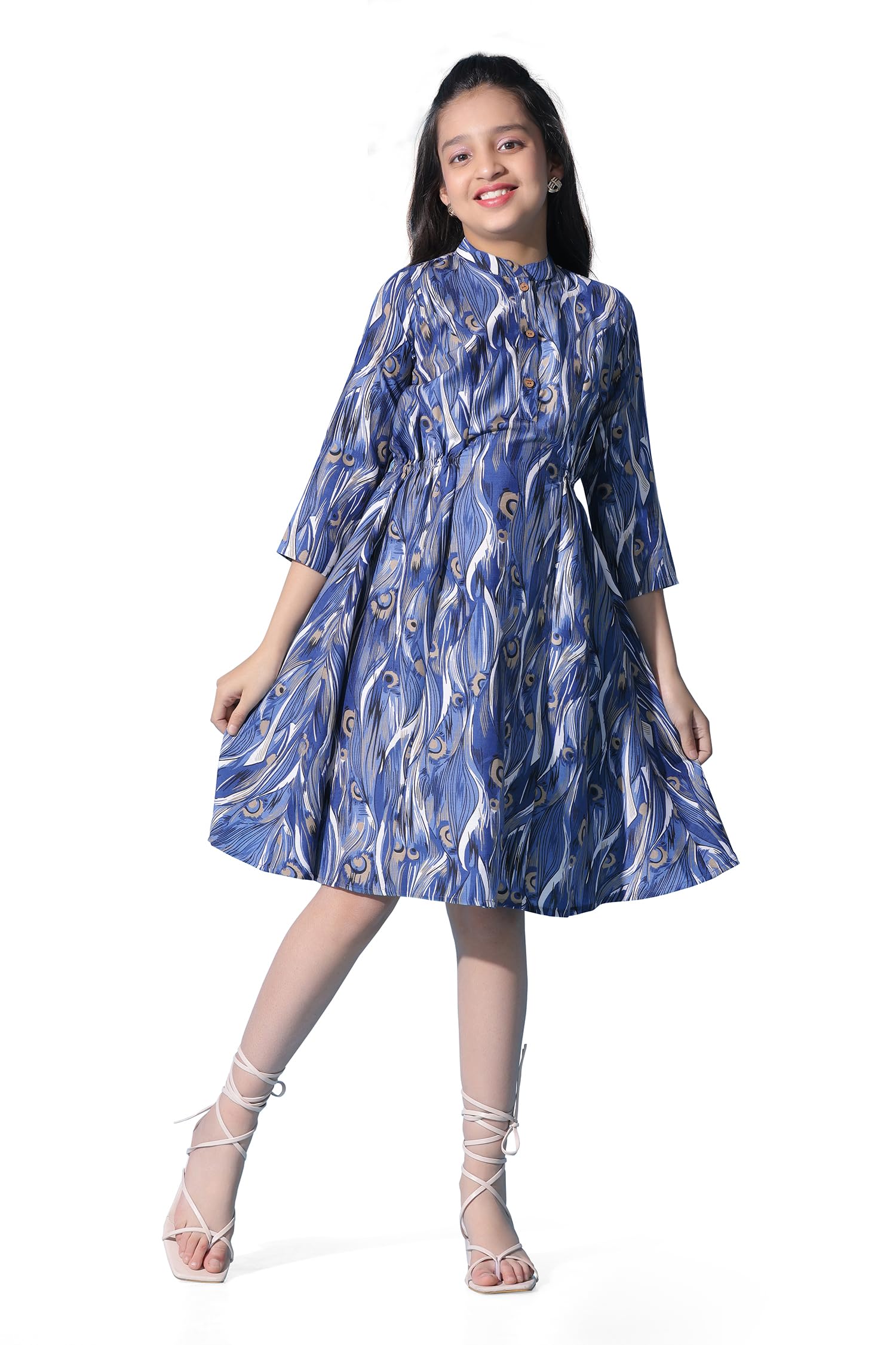 Fashion Dream Girl’s Printed Knee Length Dresses|Frock for Girls|Kids Midi Dress for Girls|Western Dress(FDGFRK00353 BLU 40_Blue_13-14Yrs)