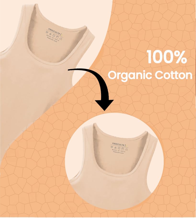 FREECULTR Regular Fit Organic Cotton Vest for Men| 100% Organic Fabric, Round Neck Comfort Vest