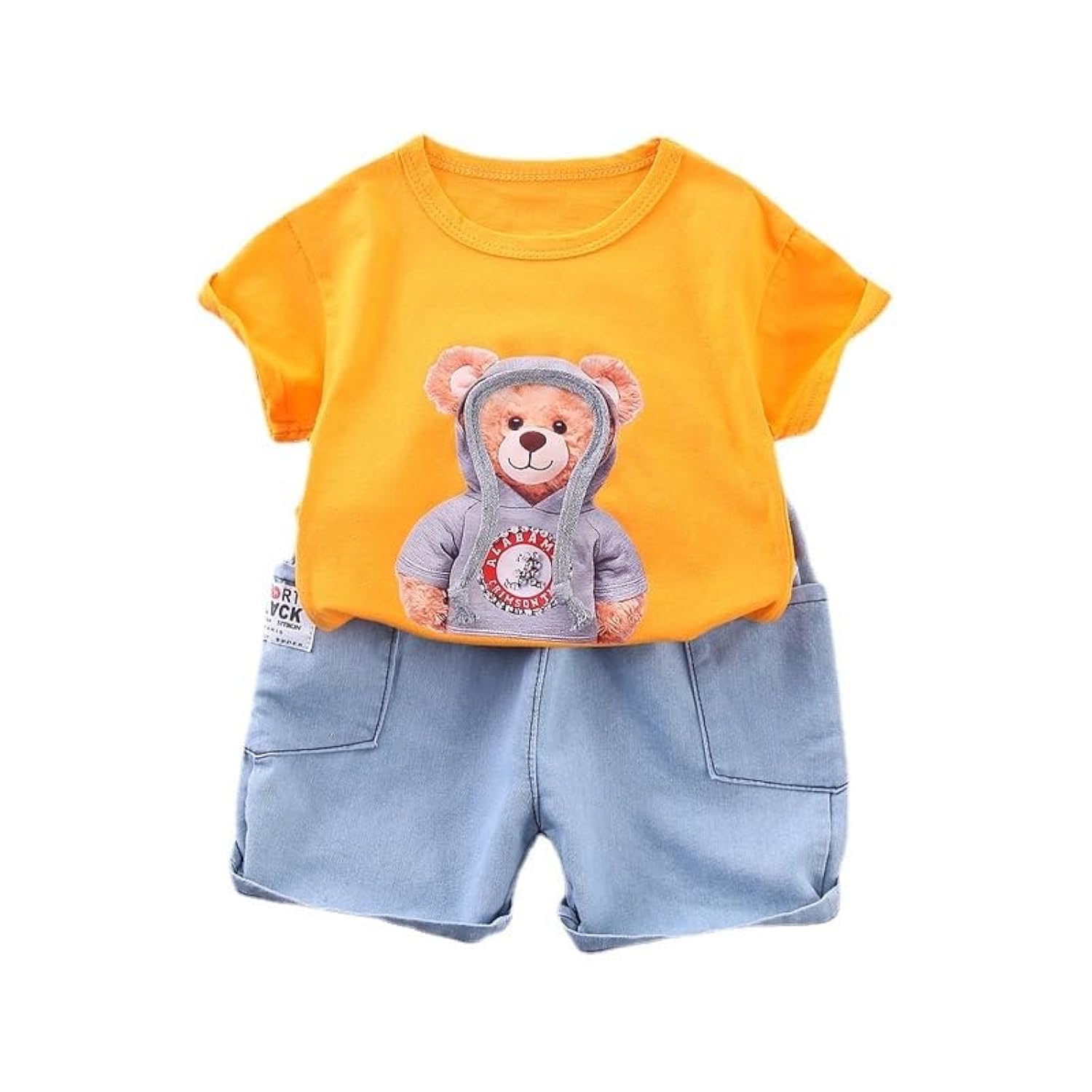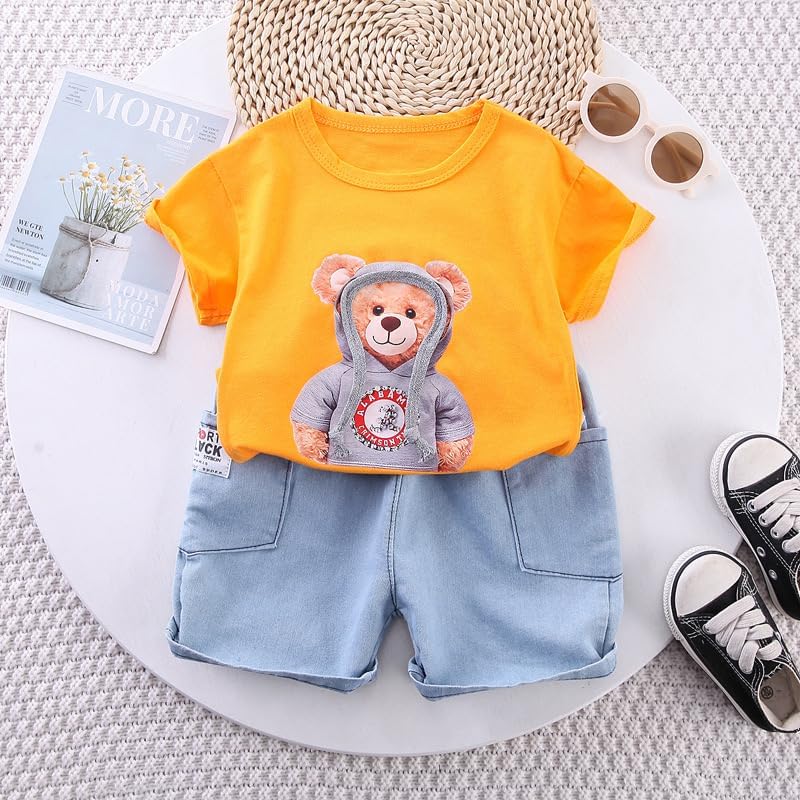 Googo Gaaga Boy’s Cotton Teddy Printed T-Shirt with Shorts (Orange, 5-6 Years)