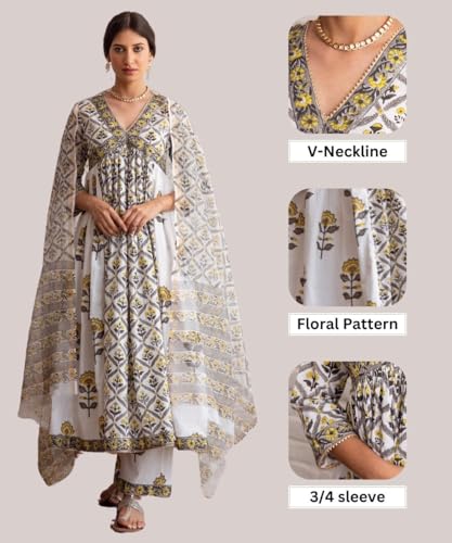 - Fit Type: Straight; Ethnic Sets: ANARKALI Kurta Pant and printed Dupatta Set