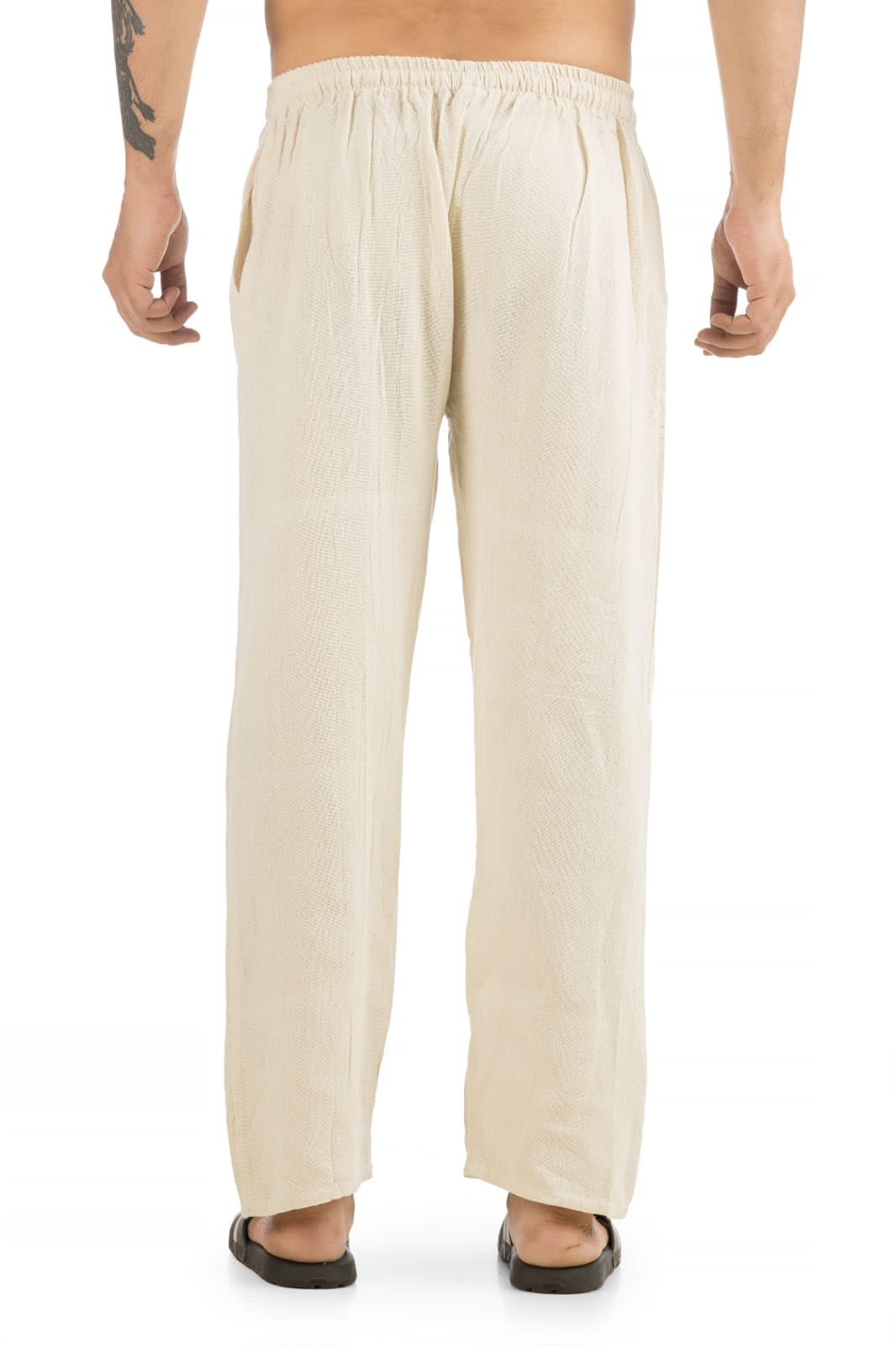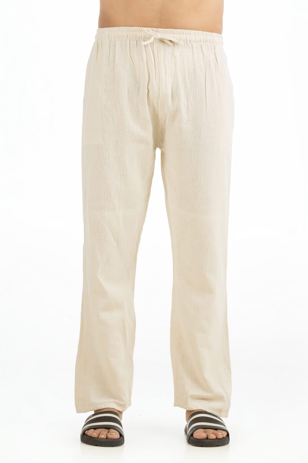 HALLUCINATION Pure Cotton Pajama for Men, Soft Eco-friendly One Size Pjs for Waist 28 to 34 inches, Casual Lounge Wear Handloom Textured Pyjama Trouser Pant (Beige)