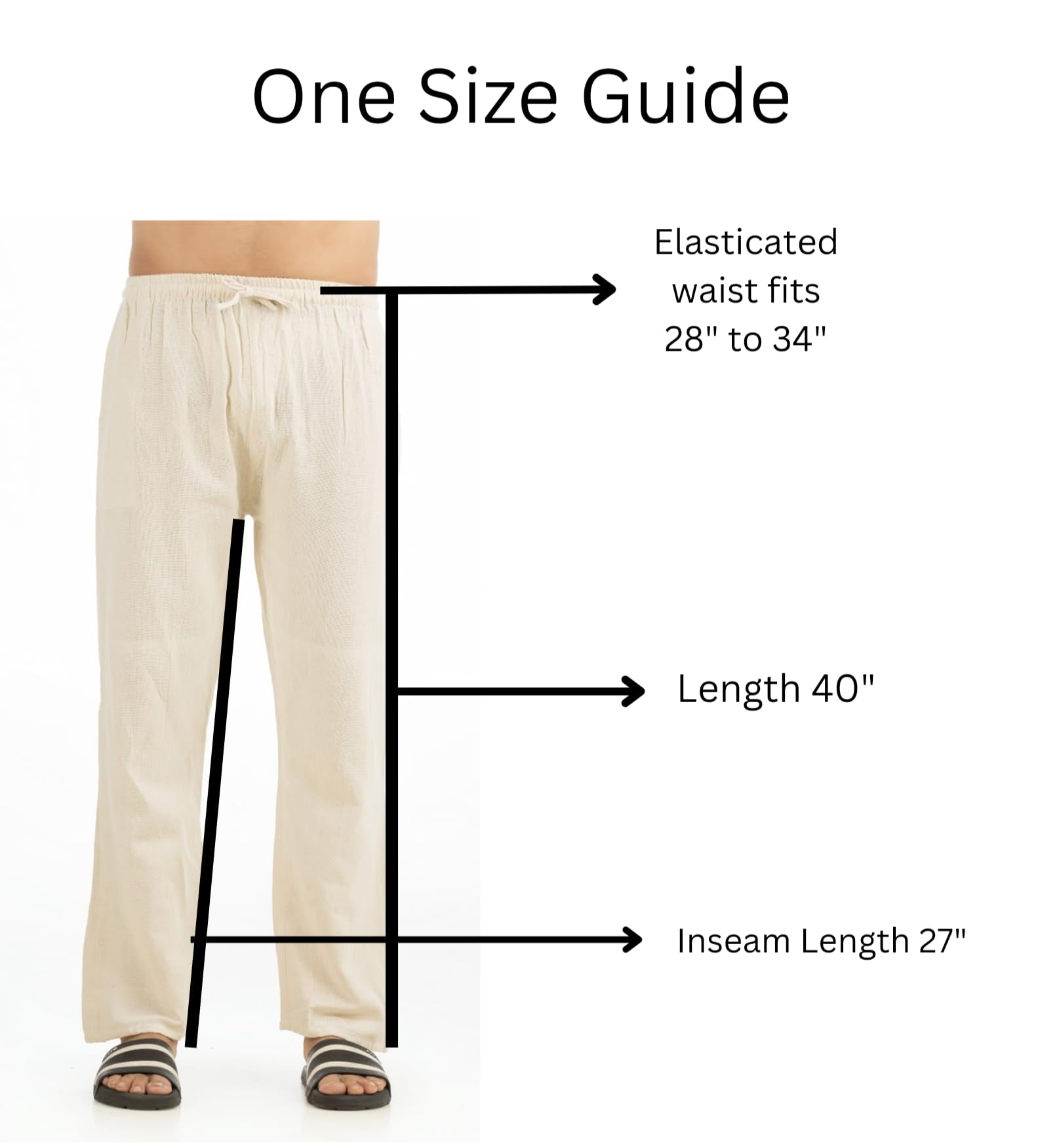 • Relaxed Fit Cotton Pajama for Men : One size fits most with a relaxed silhouette suitable for waists ranging from 28 to 34 inches.