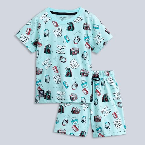 Hopscotch Boys Cotton Short set in Aqua Color For Ages (5-6 Years)
