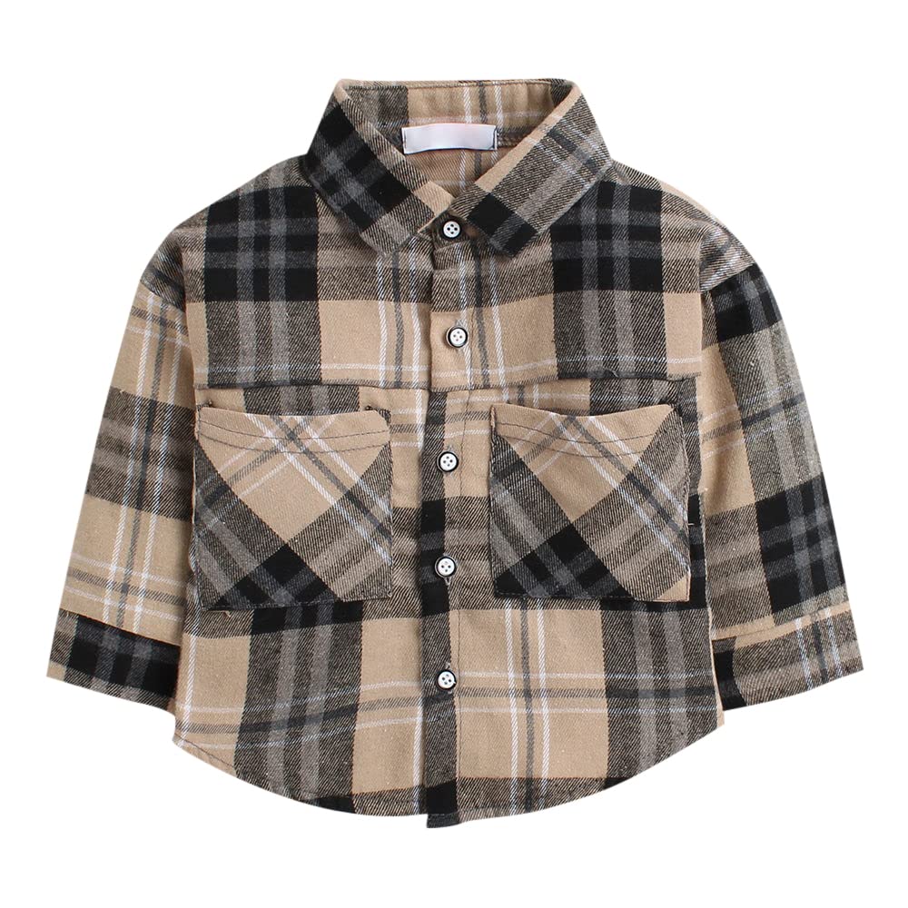 Hopscotch Cotton Boys Khakiplaid Printed Shirtpant Set In Beige Color For Ages 3-4 Years
