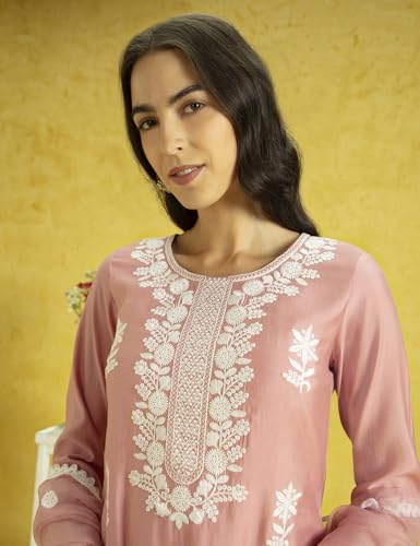 Kaari Roman Silk Womens Kurta Set (KAAAW24WSKD-78974_Dusty Gulaab Pink_XL)