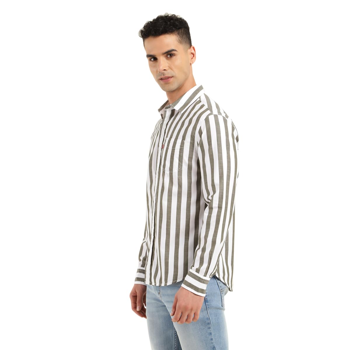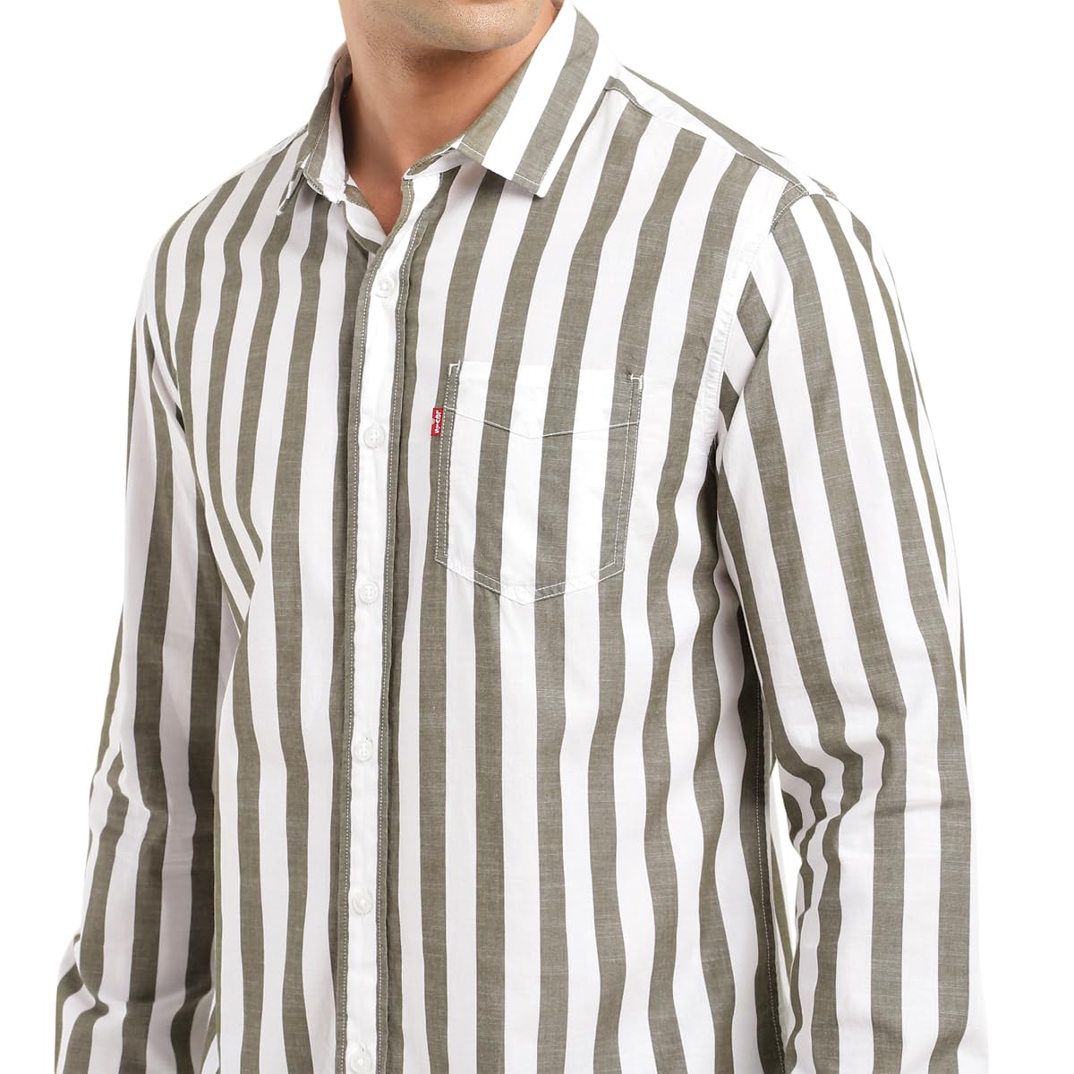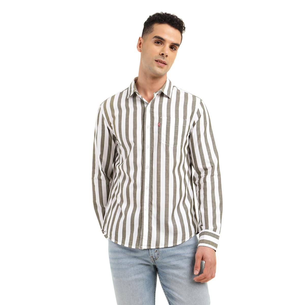 Levi’s Men’s Striped Slim Fit Shirt (32907-0481_Green