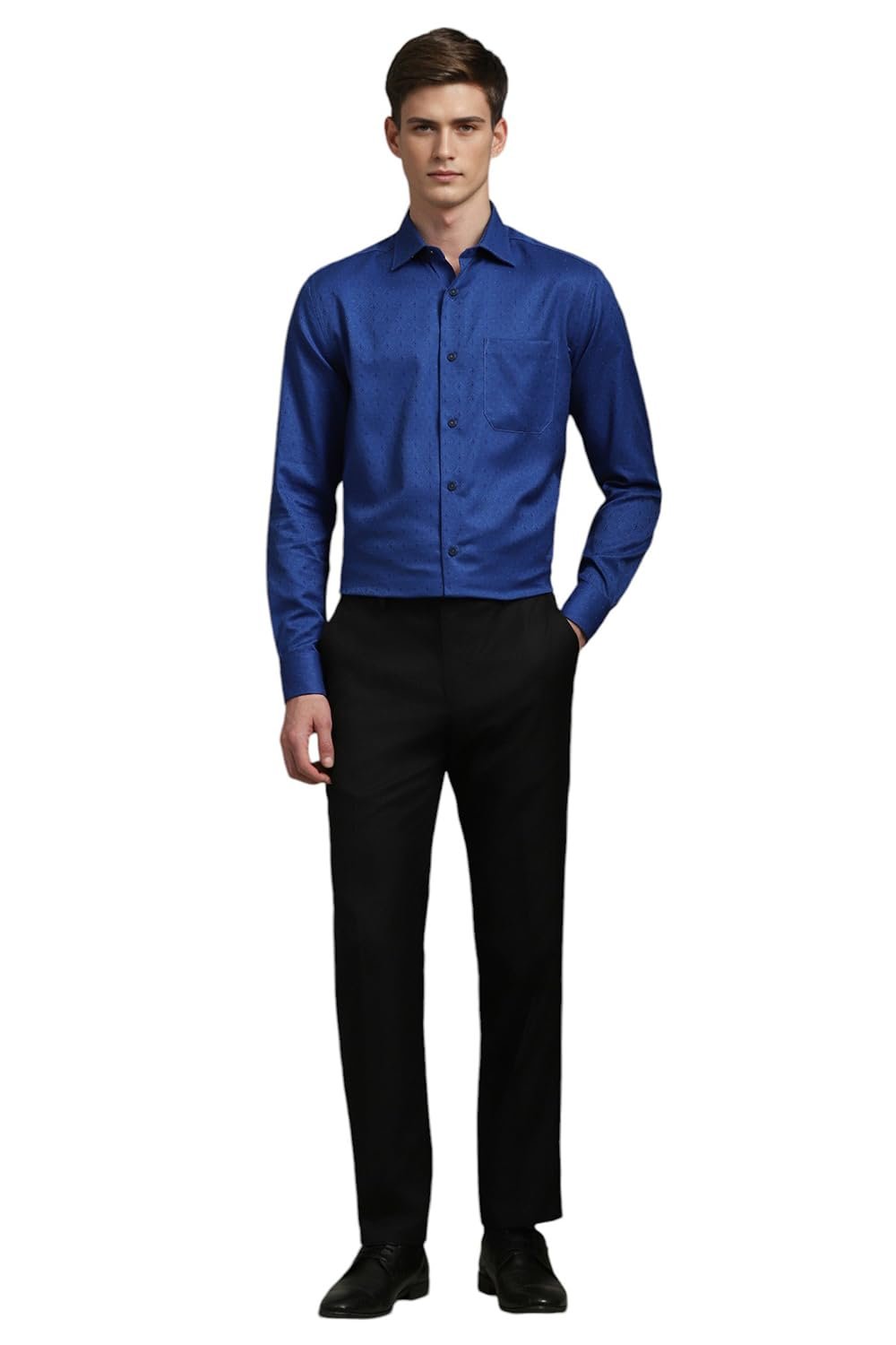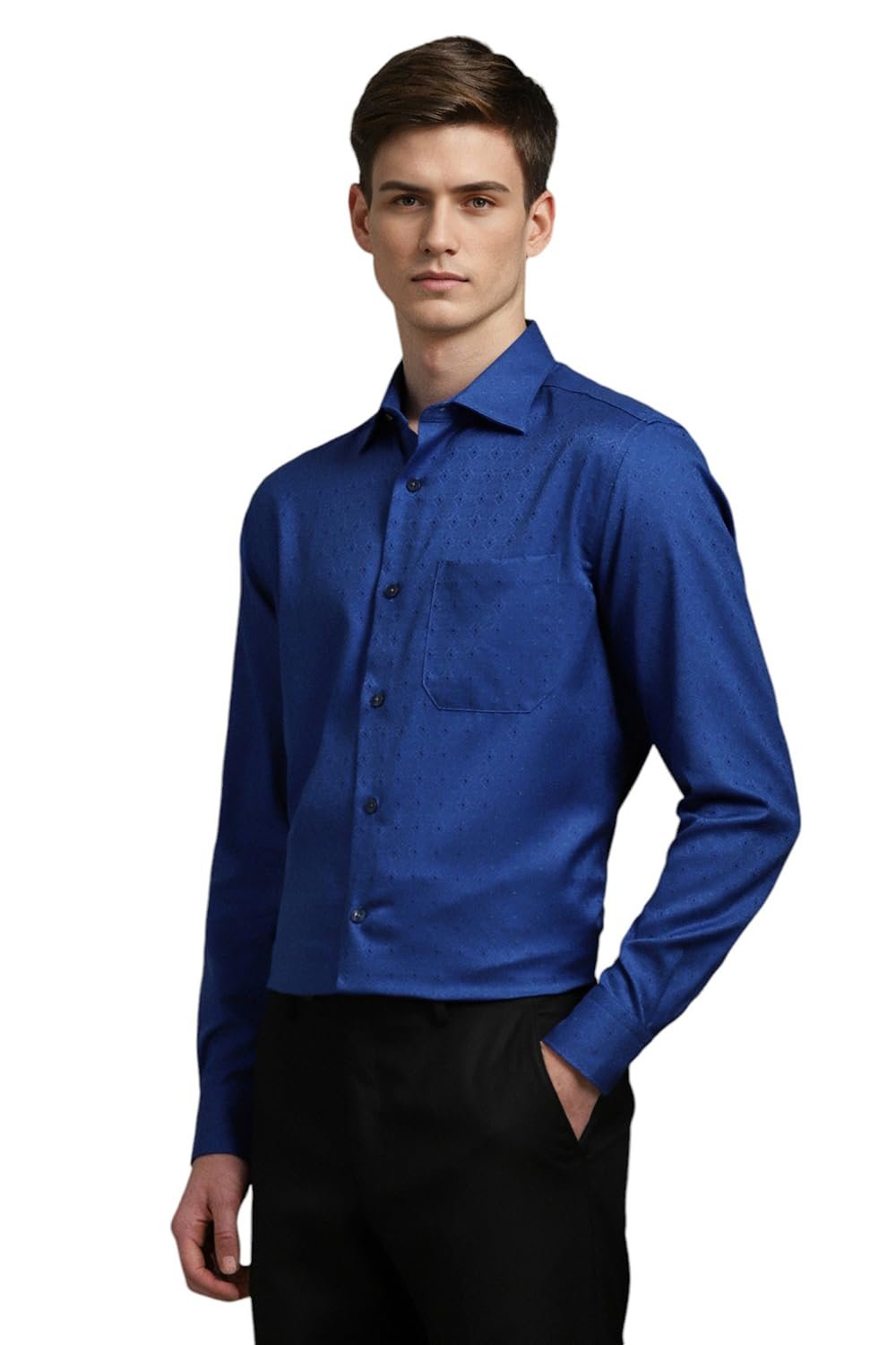 Showcase your refined sartorial taste in this Blue Print shirt from Louis Philippe at a Formal event. Tailored in Classic Fit , this shirt features a Regular Collar , Full Sleeves , and is crafted from exquisite 100% Cotton .