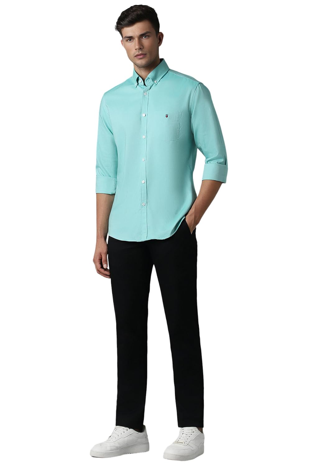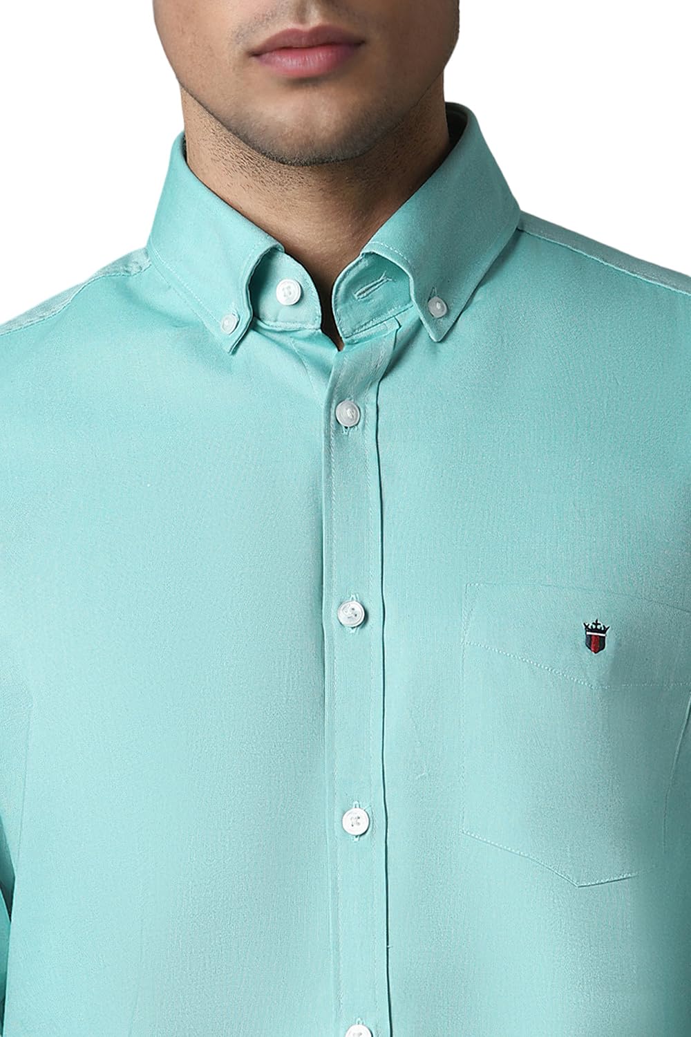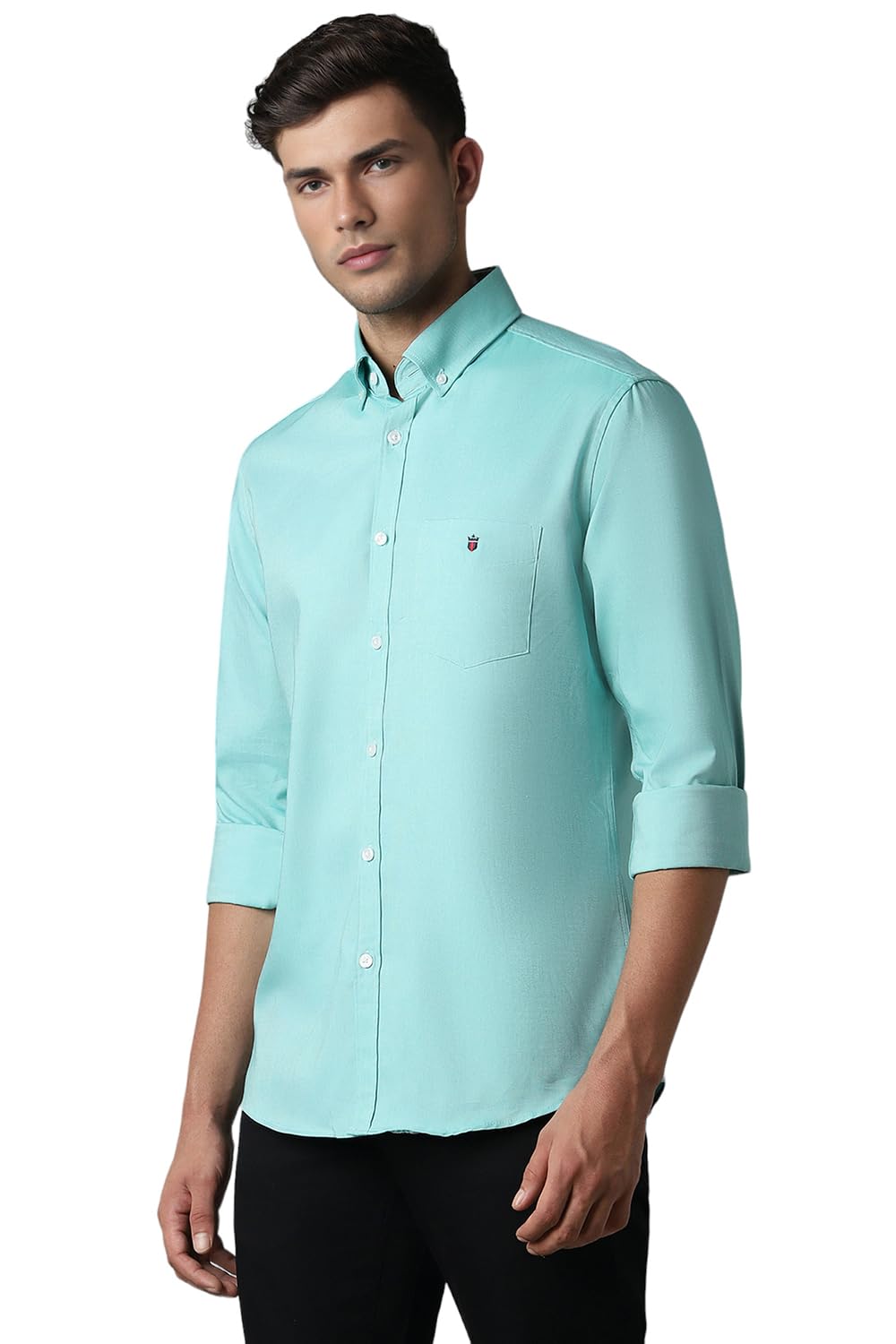 Louis Philippe Men’s Solid Slim Fit Shirt (LYSFCSLP787352_Turquoise