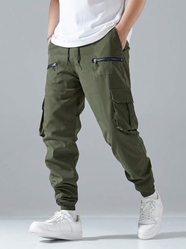 Lymio Men Mid Rise Cargo Pants Cotton Green XL