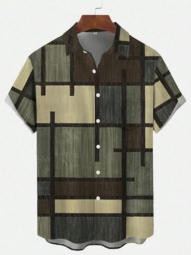 Lymio Men’s Cotton Regular Fit Shirt (Geomatric-Green-L_Geeen)