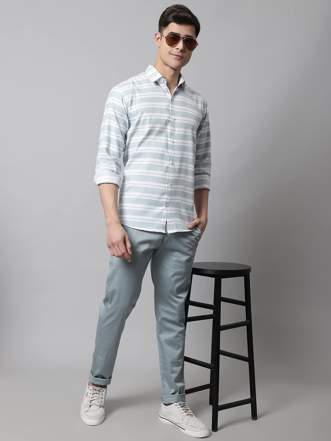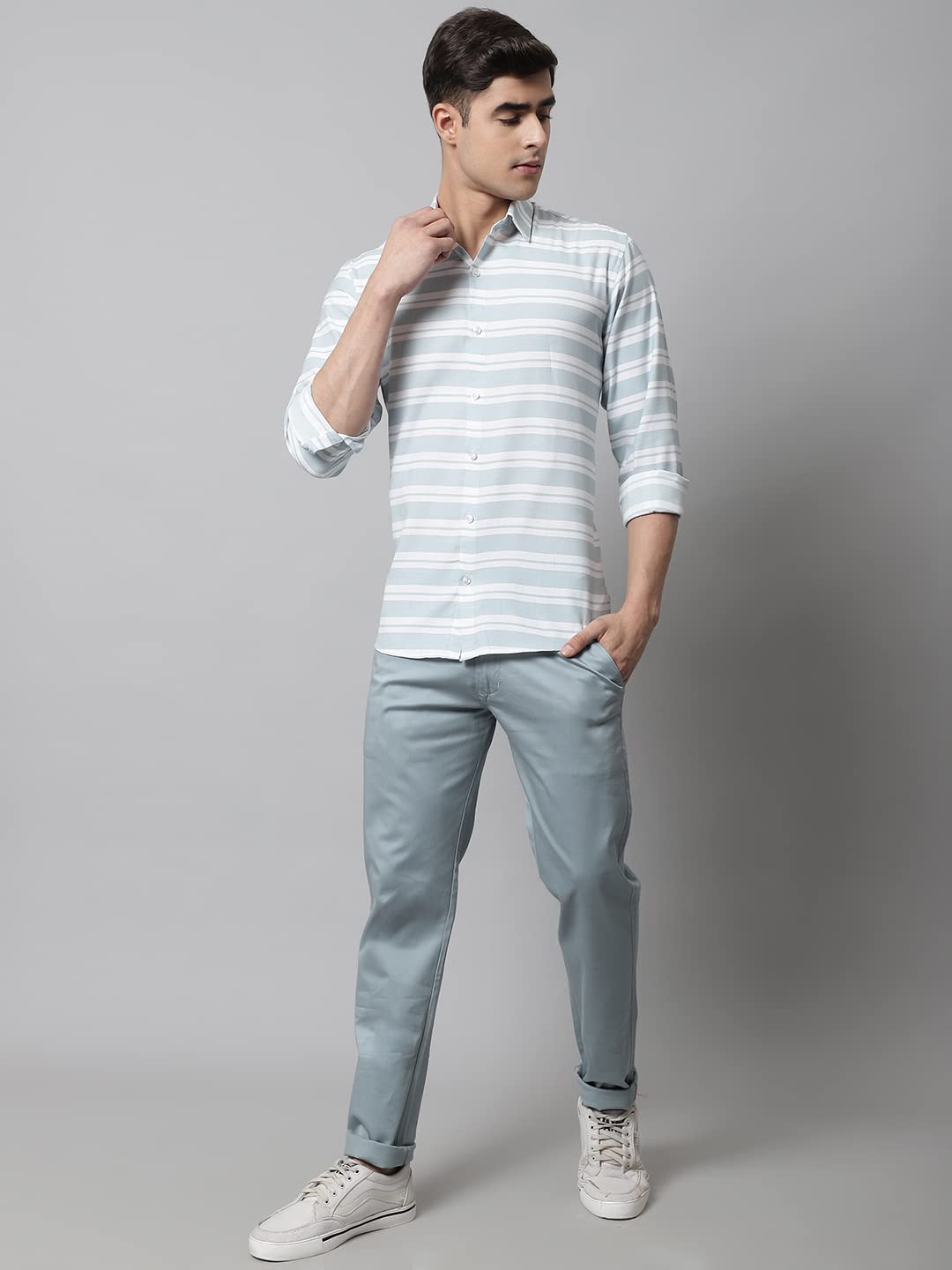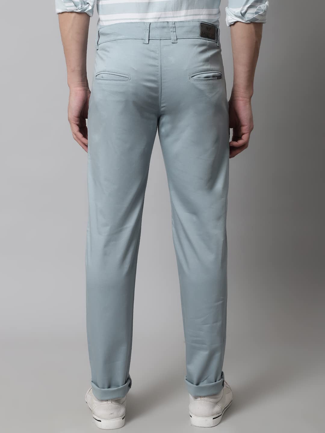 Majestic Man Slim Fit Cotton Blend Casual Mid Rise Trousers for Men (32, Sea Blue)