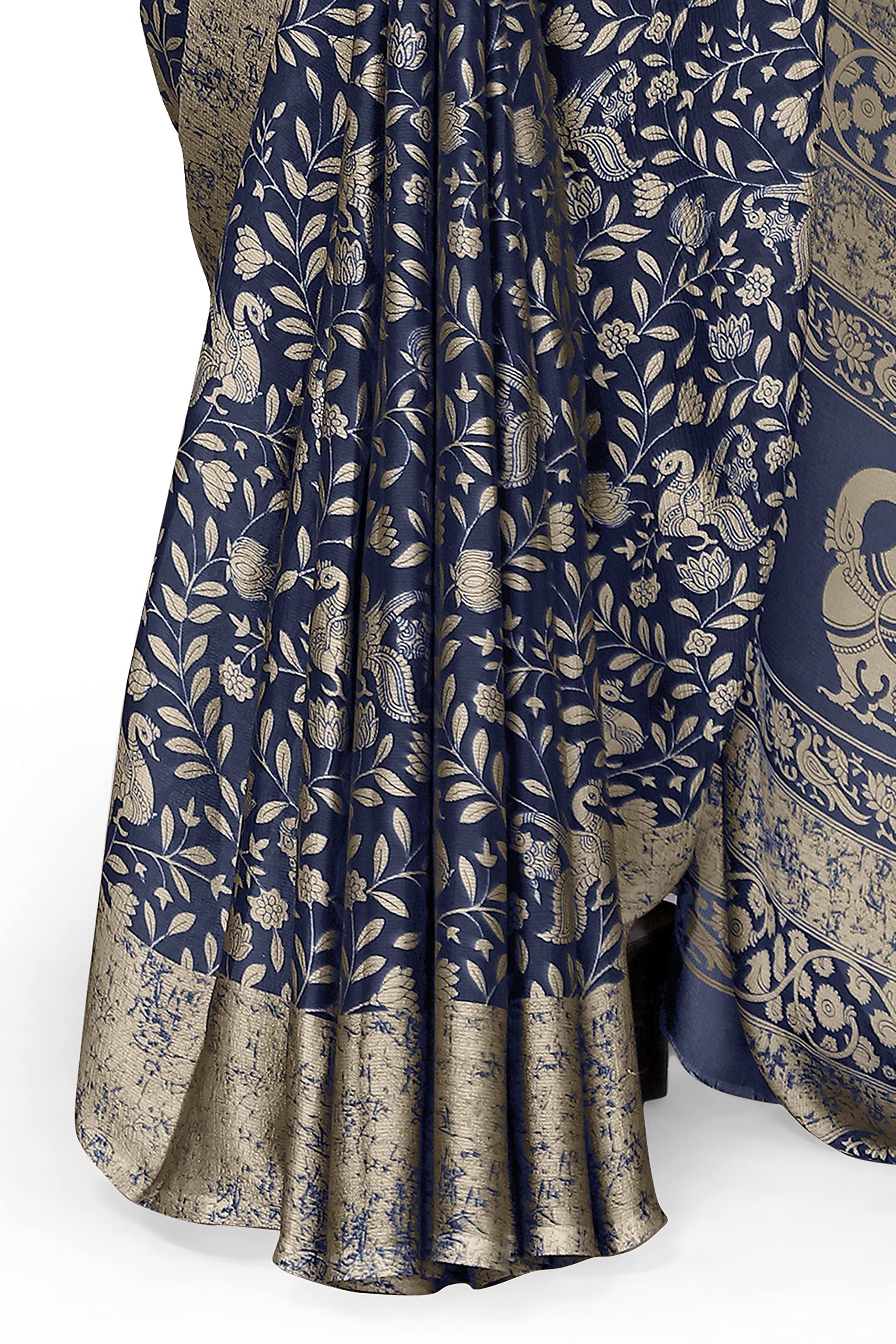 - Color :: Saree – Navy Blue, Beige | Blouse – Beige