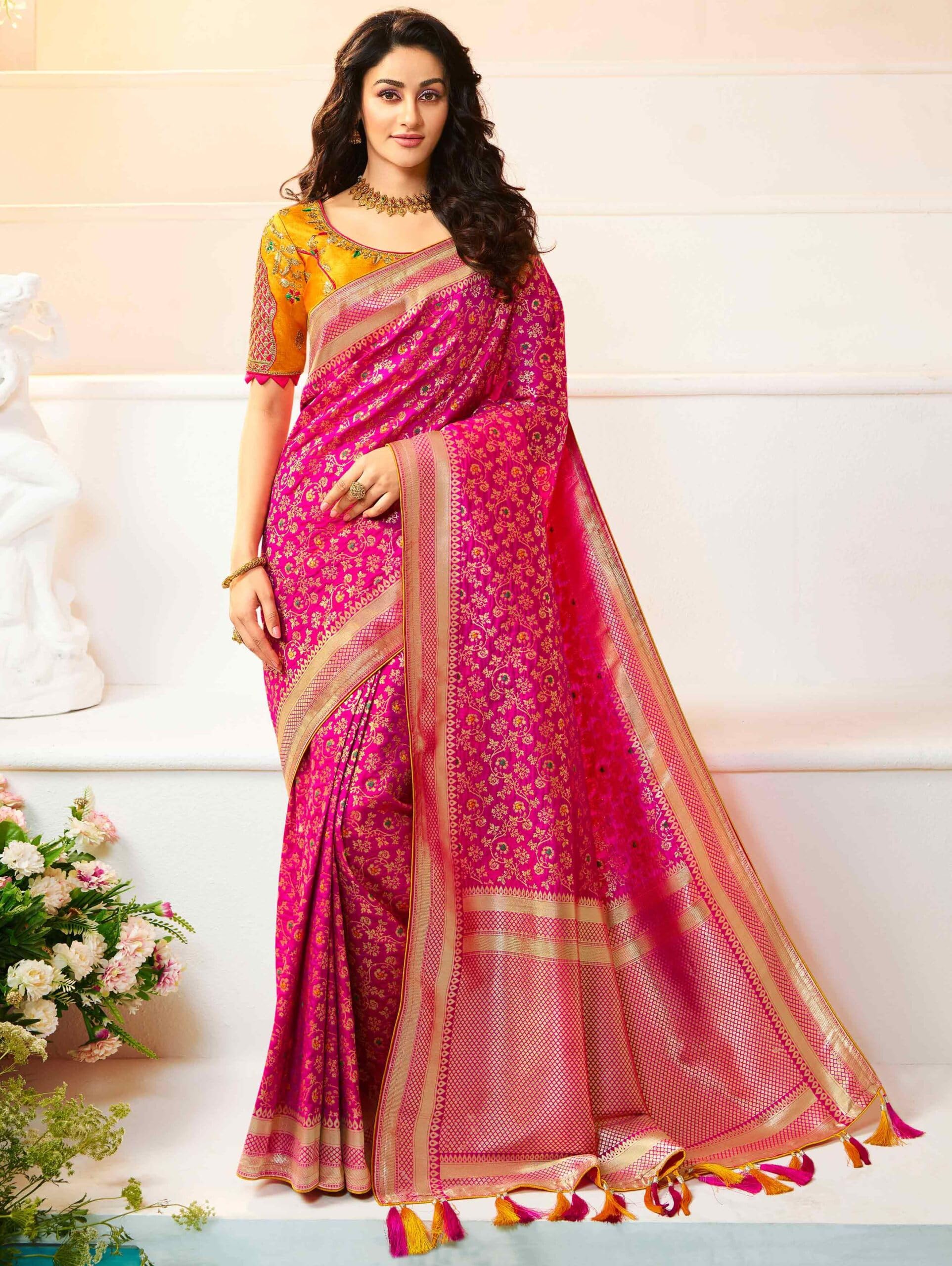 - Saree Fabric :Banarasi tissue silk || Blouse Fabric: Banarasi tissue silk