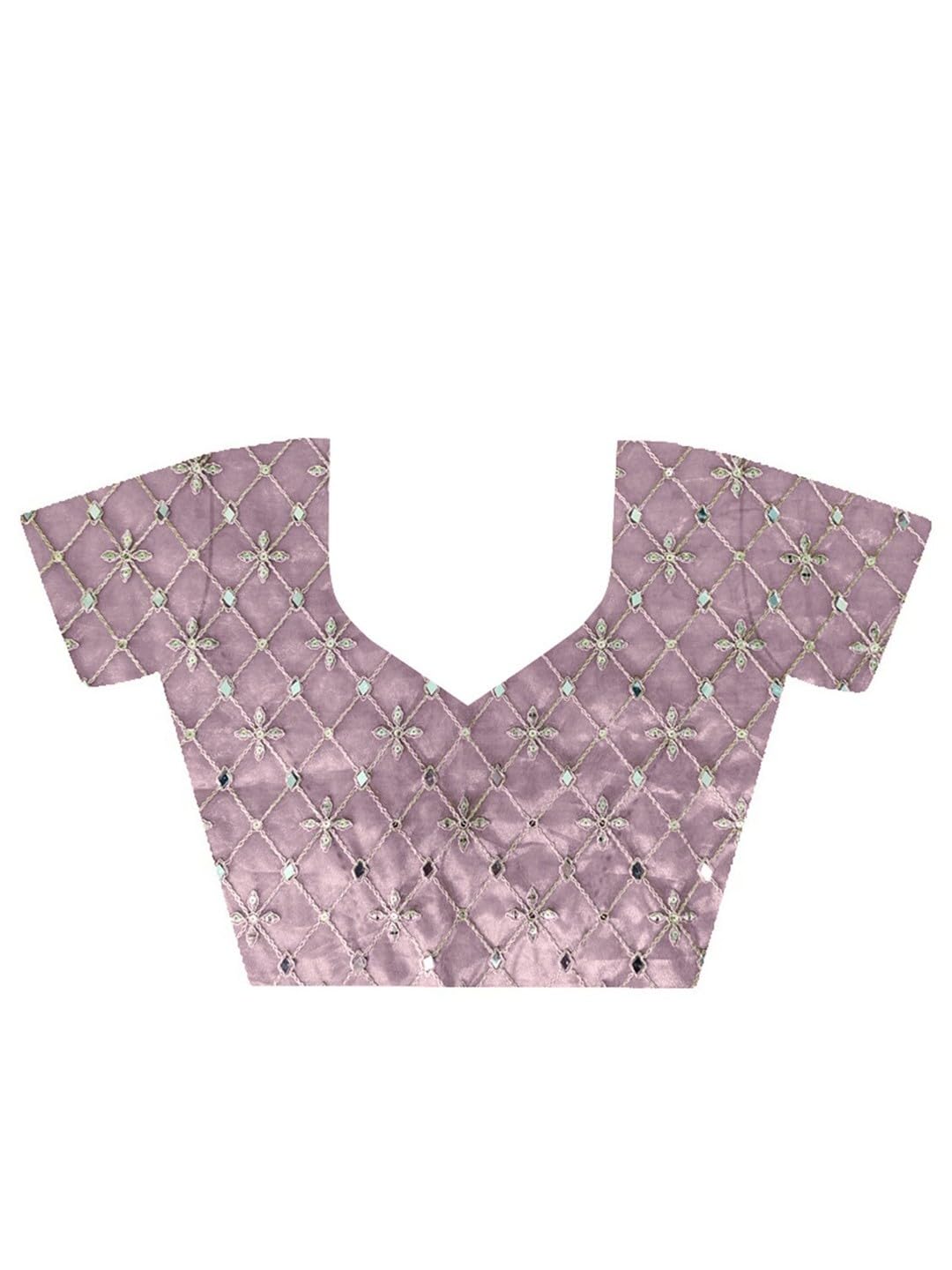 MUNIR Women’s Silver Tissue Net Ethnic Saree With Unstiched Blouse Piece For Festival And Function.(Purple)