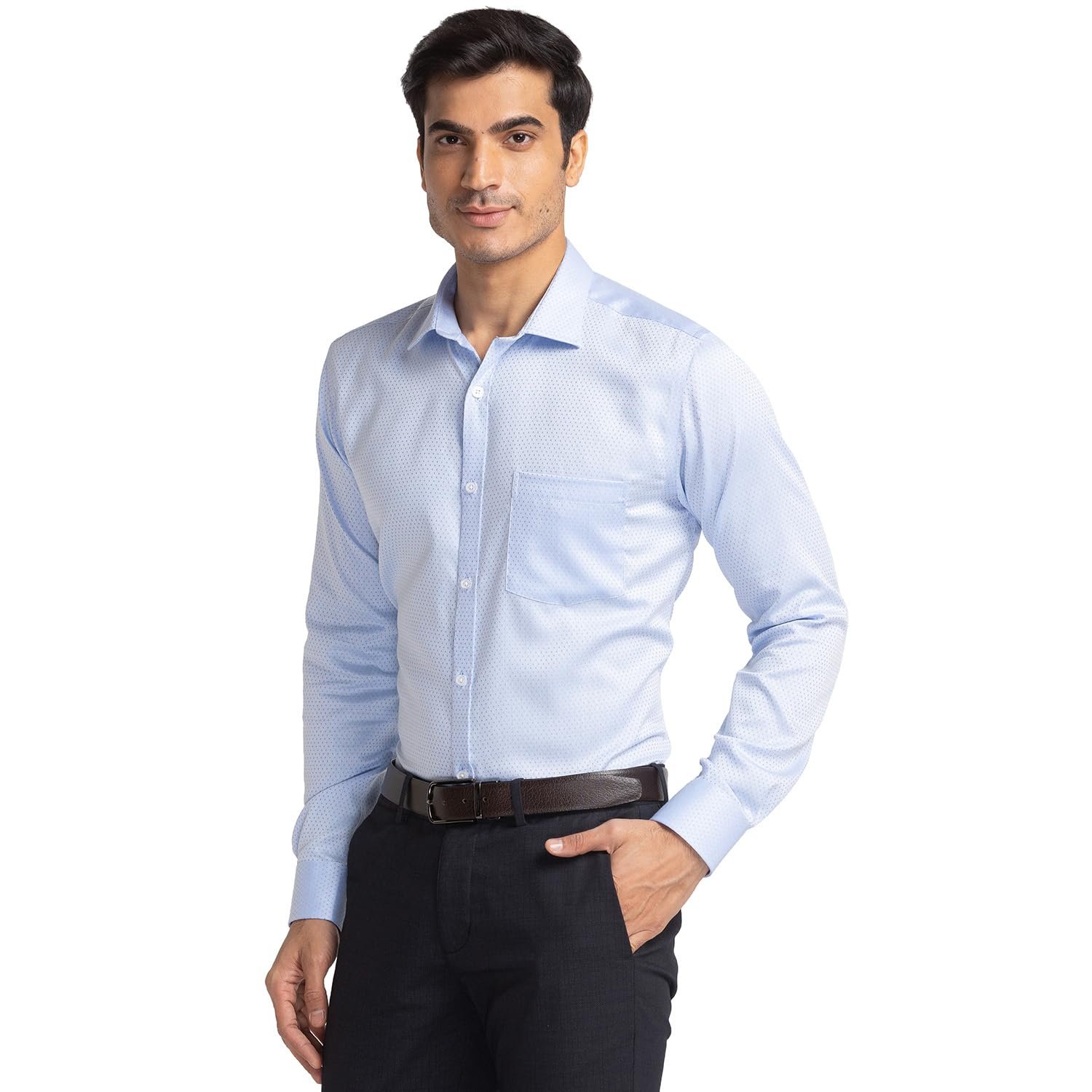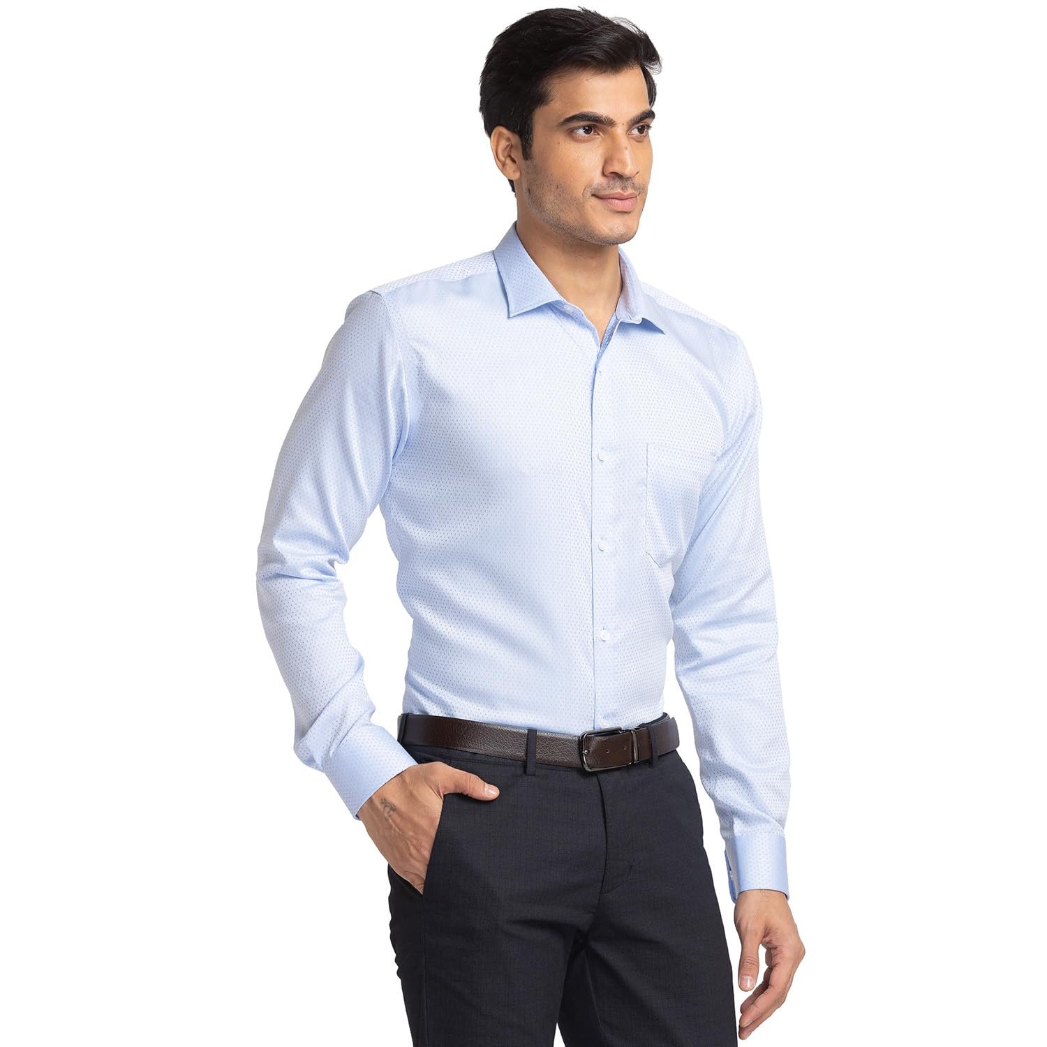 Park Avenue Men’s Slim Fit Structure Pattern Pure Cotton Semi Cutaway Collar Full Sleeve Formal Shirt (Size: 44)-PMSX16714-B4 Medium Blue