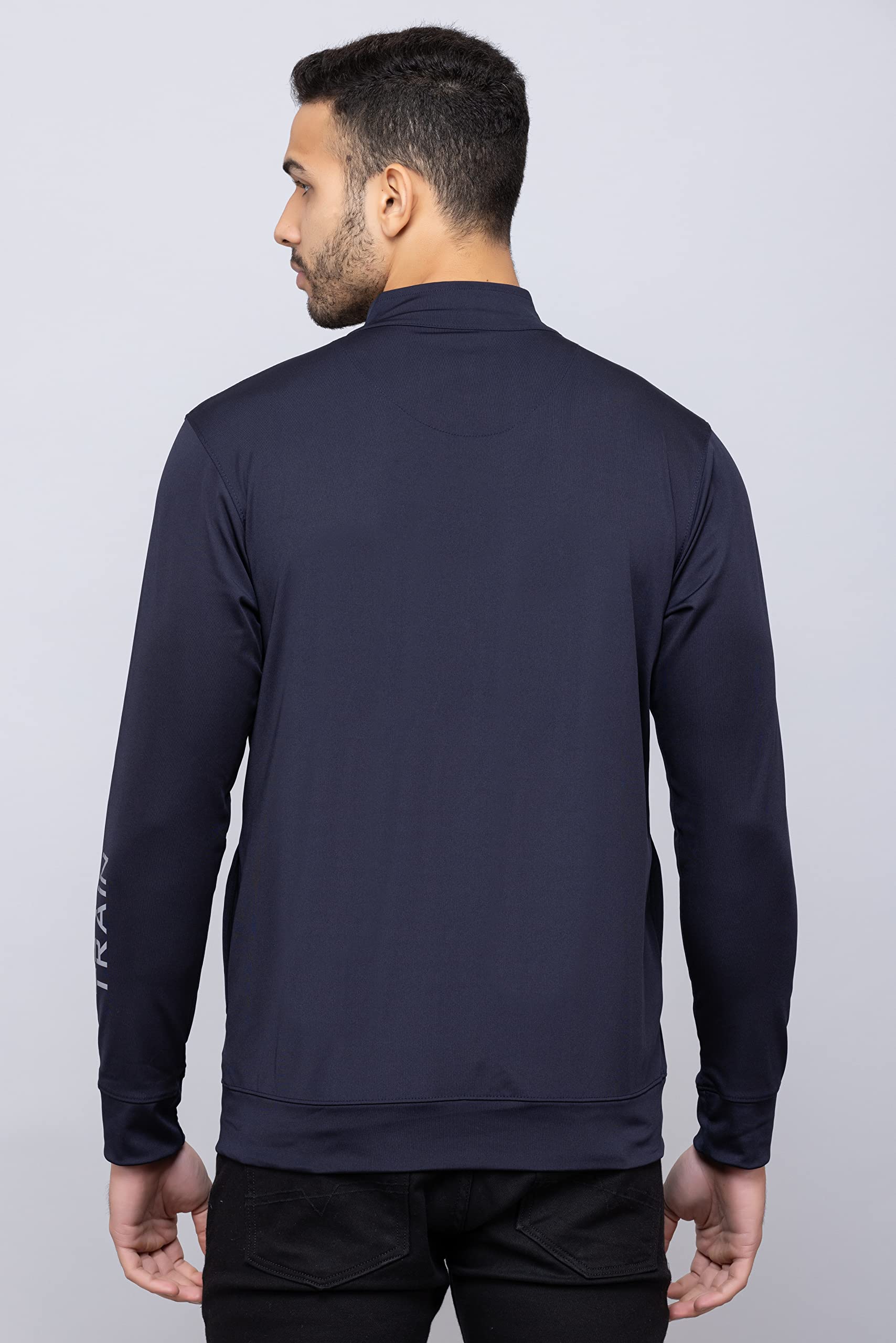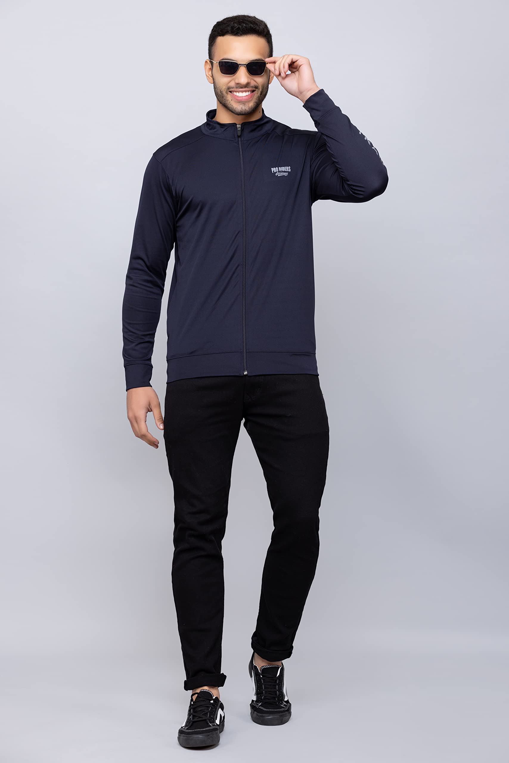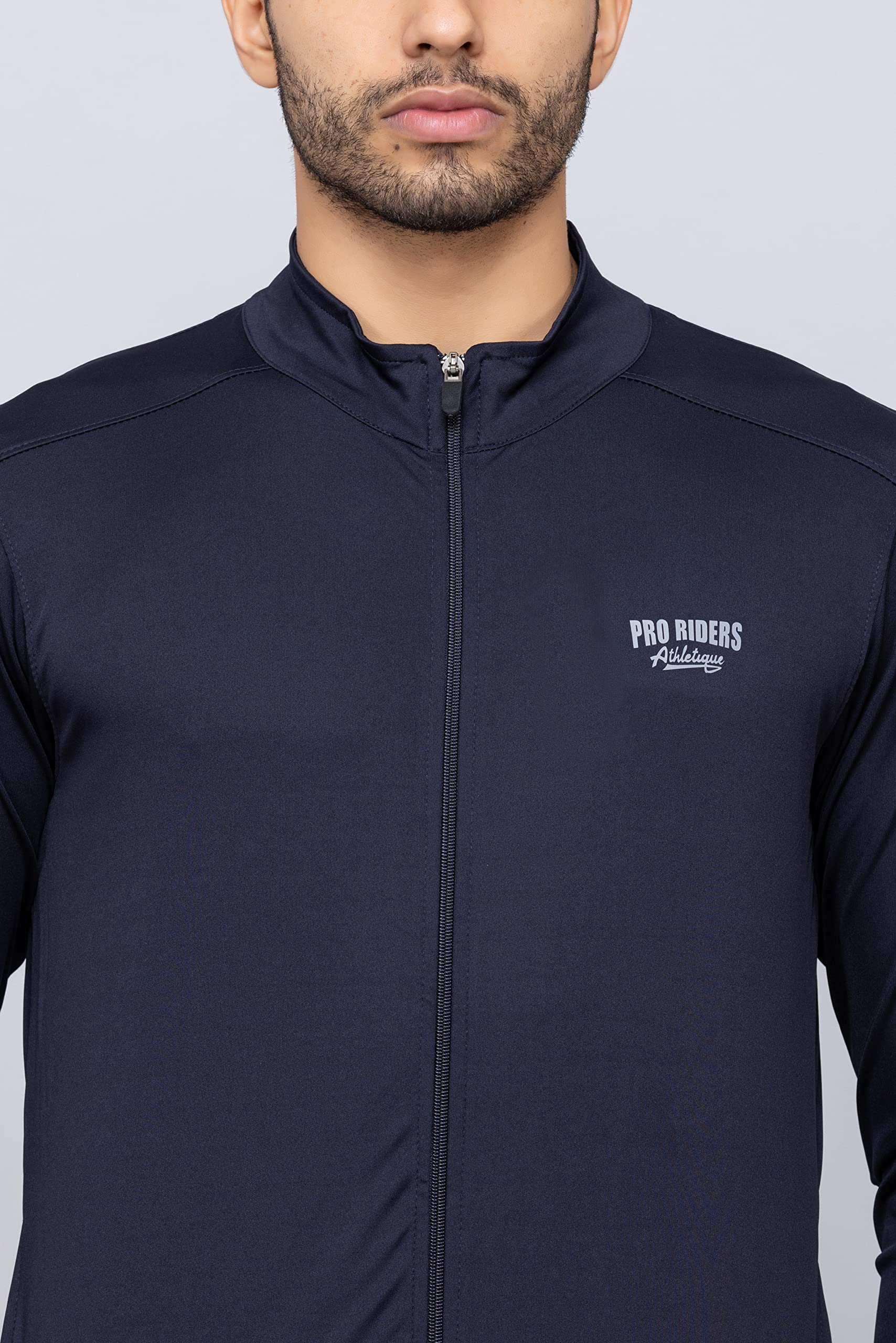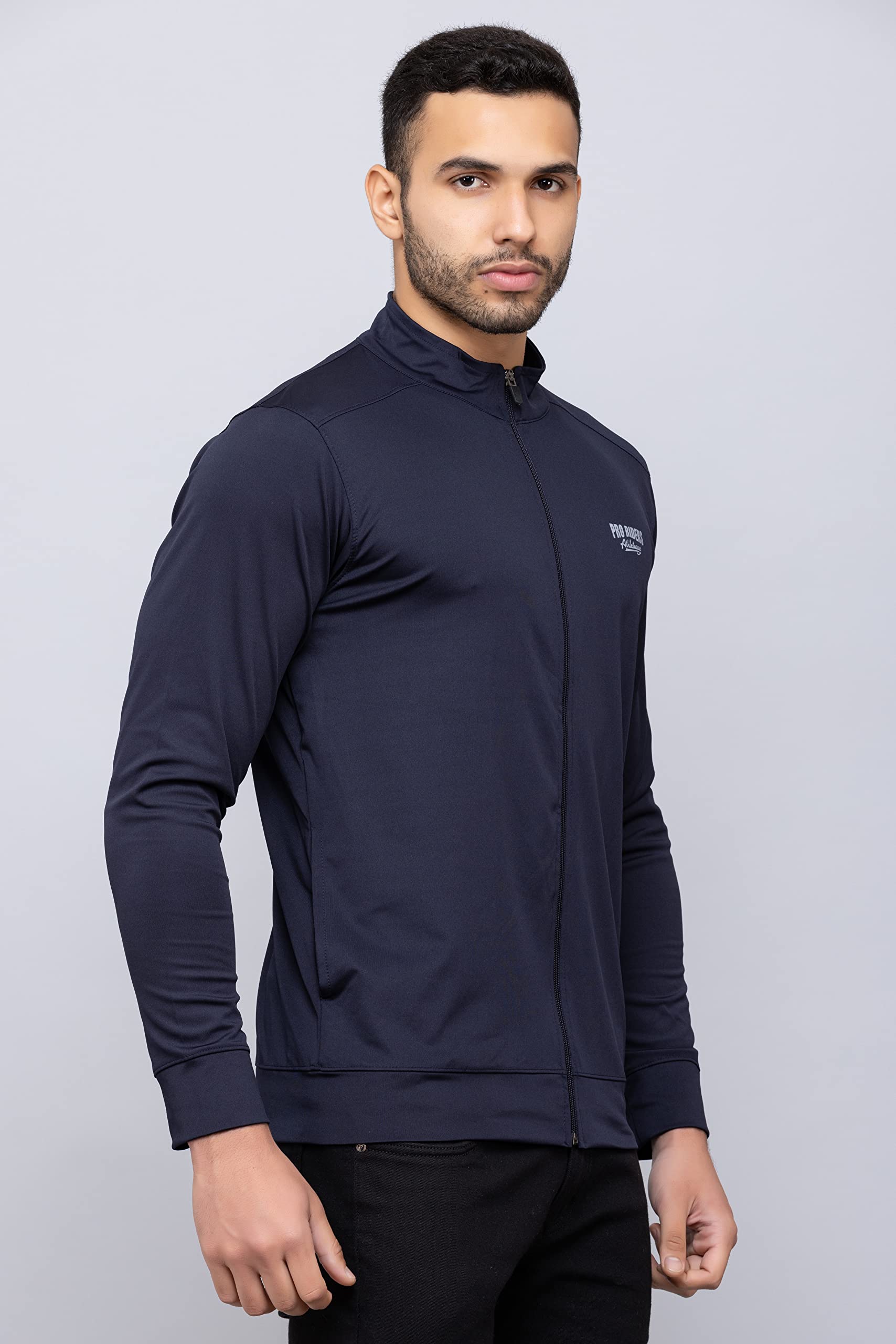 PRORIDERS Lycra Dri-Fit Solid/Plain Men’s Full Sleeve Front Zip Sports Biker/Gym Jacket with Side Pockets (4XL, Navy)