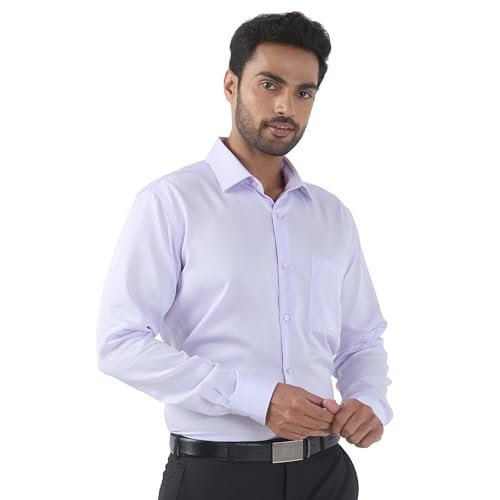 Raymond Men Contemporary Fit Solid Pattern Pure Cotton Semi Cutaway Collar Full Sleeve Formal Shirt (Size: 42) RMSV12994-V4 Medium Violet