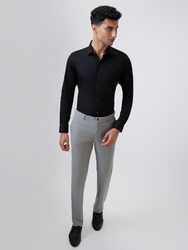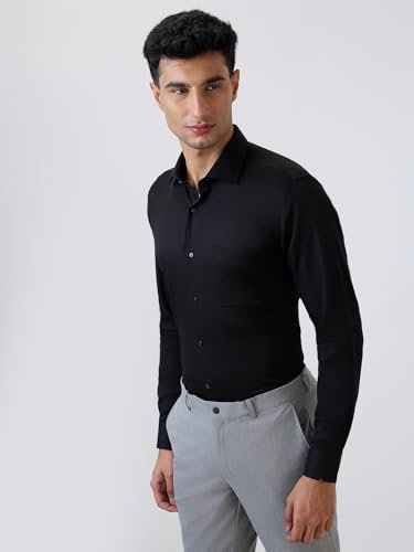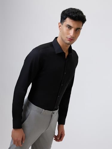 Raymond Men Contemporary Fit Solid Pattern Pure Cotton Semicutaway Collar Full Sleeve Formal Shirt (Size: 46)-RMSV13433-K9 Black