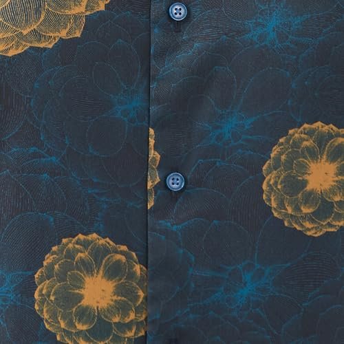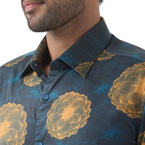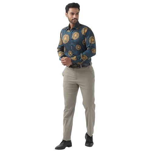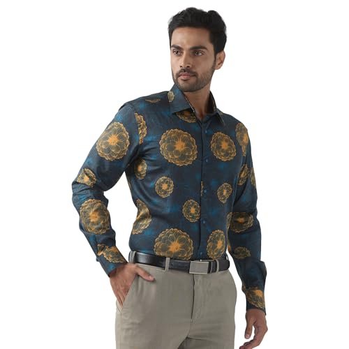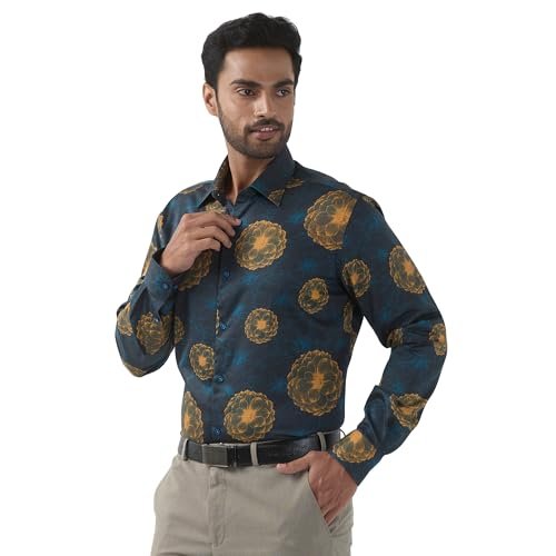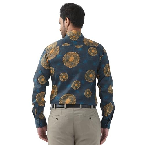 Raymond Men Regular Fit Print Pattern Pure Cotton Semi Cutaway Collar Full Sleeve Formal Shirt (Size: 44) RPSX09103-P7 Dark Petrol