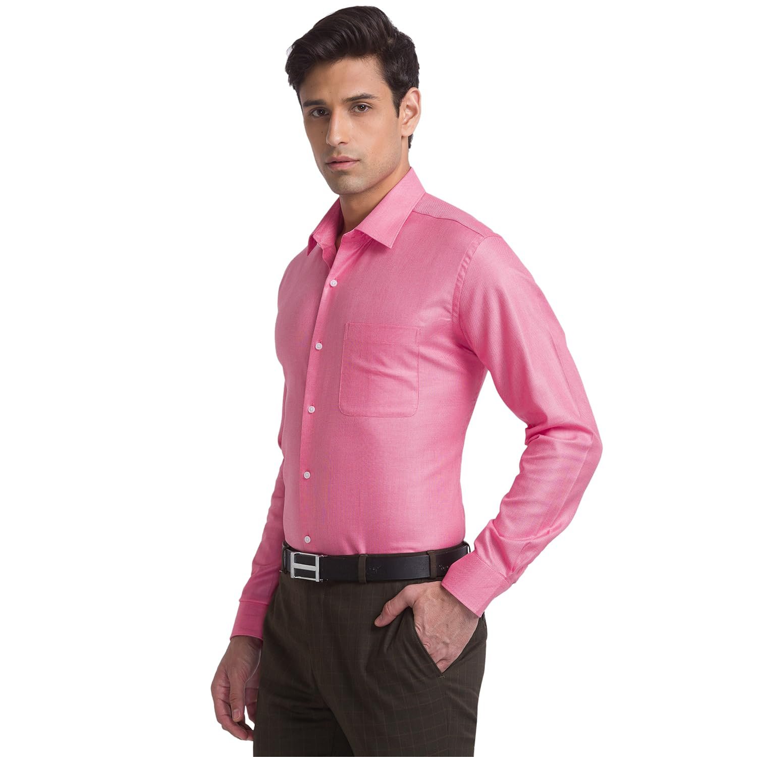 Raymond Red Structure Contemporary Fit Formal Shirts for Men