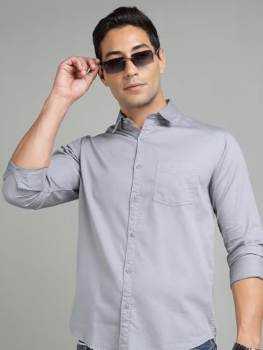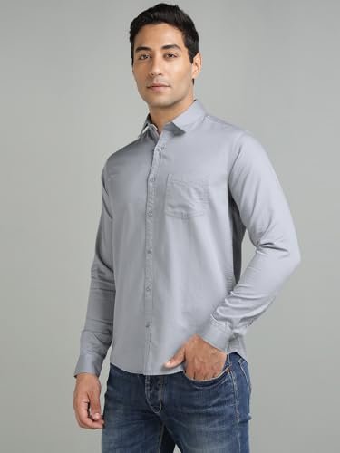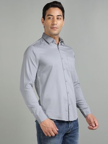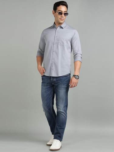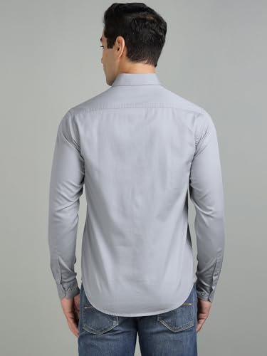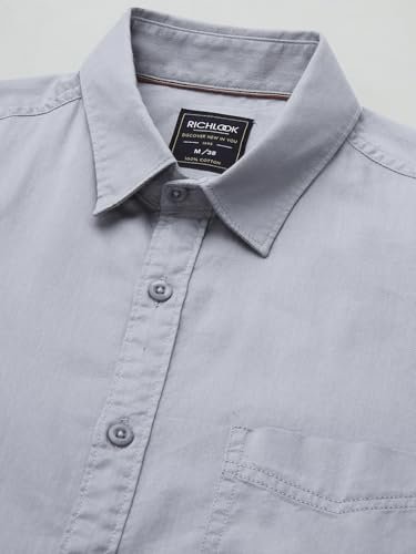 Richlook Men’s Formal Shirt Slim Fit | Button Down Office Wear | Textured Cotton Blend | Long Sleeve Business Shirt for Men | Meeting & Work Ready – Light Grey