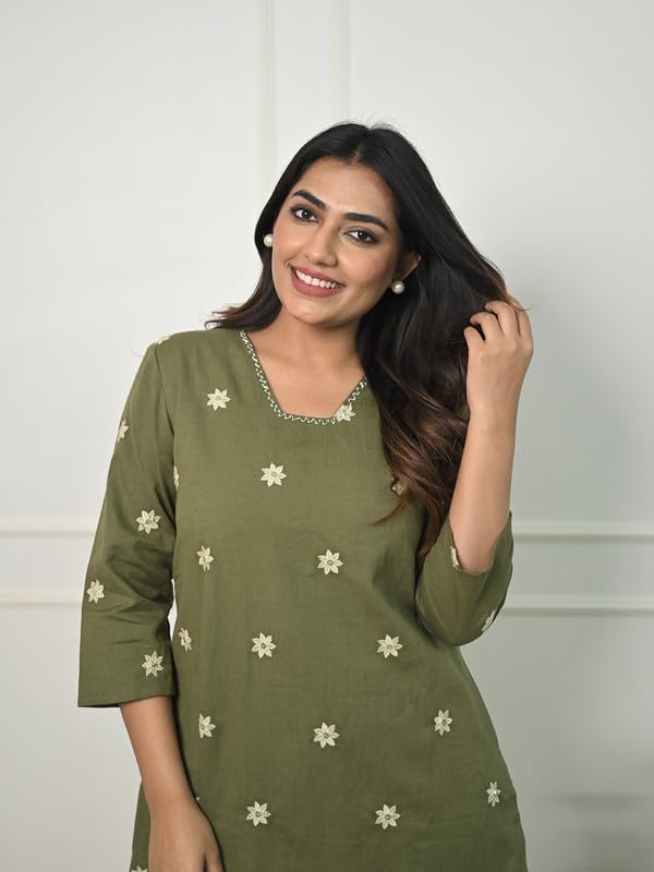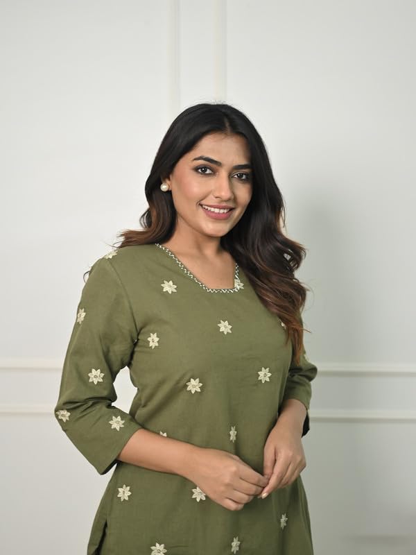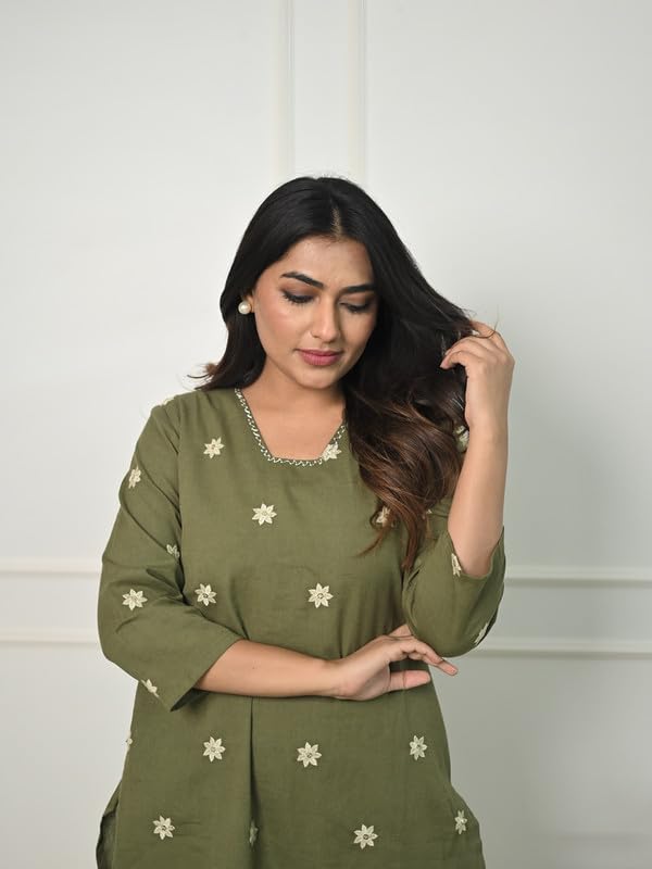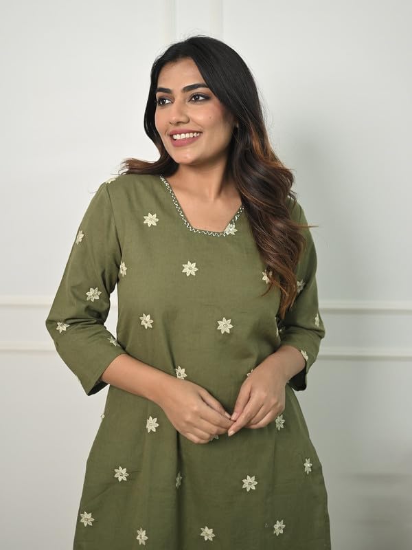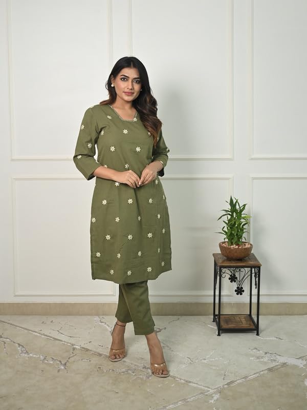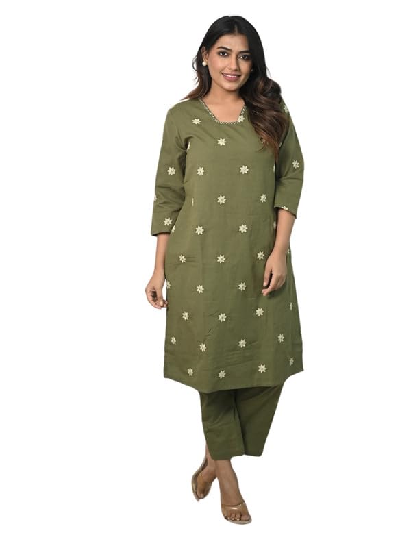Royal Export Women’s Cotton Floral Embroidered Straight Kurta Set with Pant (RX73-Mhendiwork-KP_XXL) Light Green