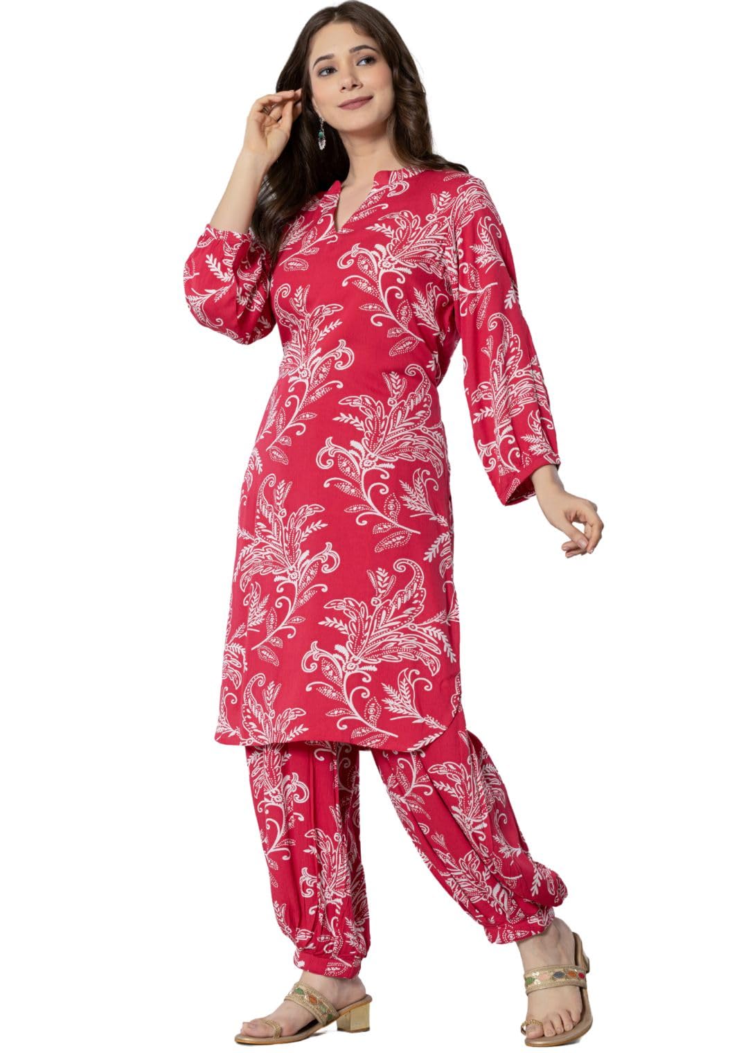 rytras Women’s Pure Cotton Printed Straight Kurta Set with Palazzo Pants – Ethnic Wear, Pink(RYT590-New,M)