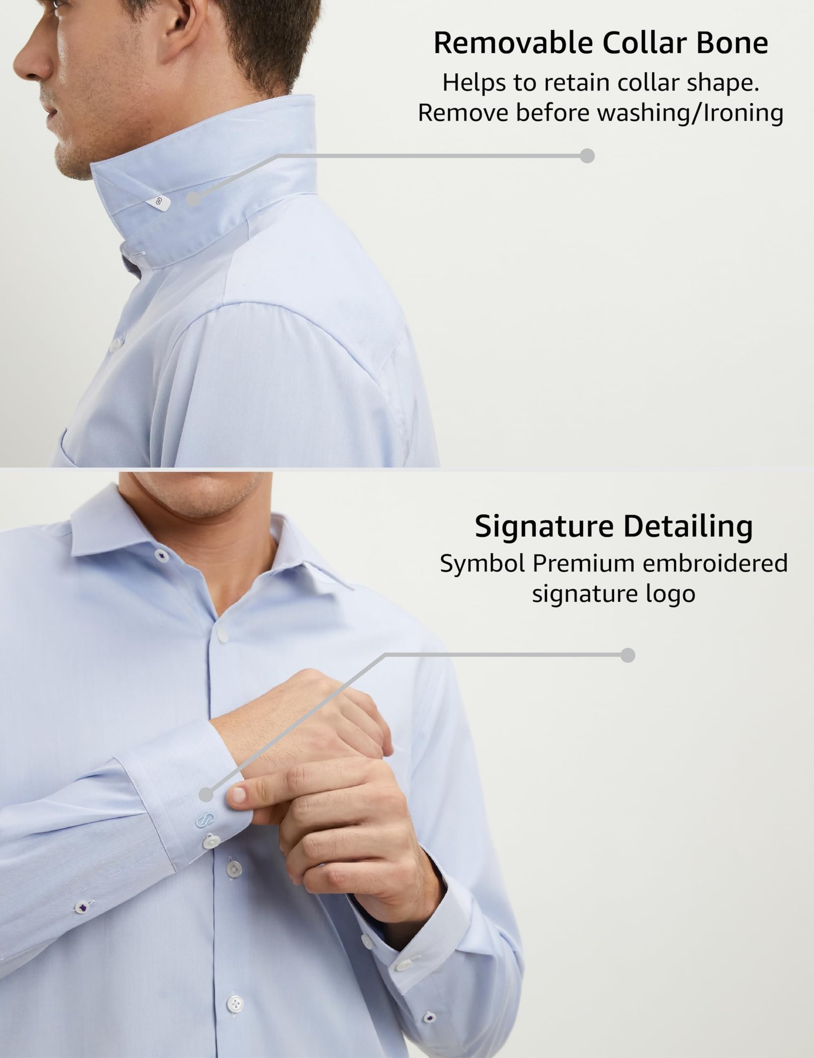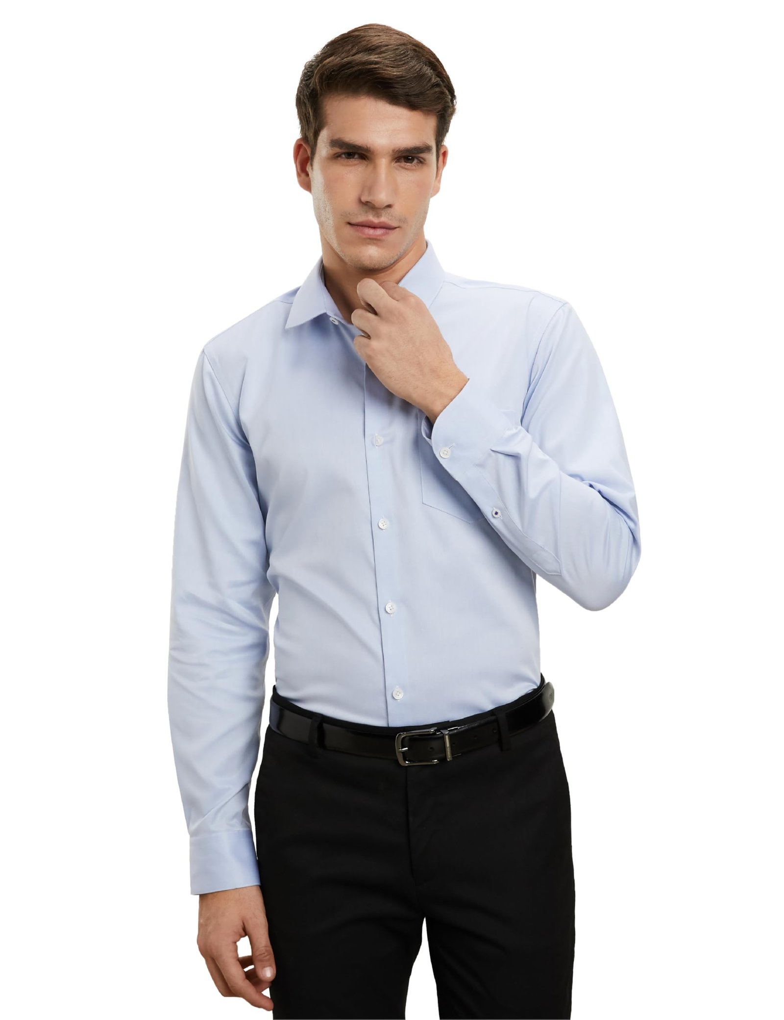 Symbol Premium Men’s Solid Wrinkle-Resistant Regular Fit Cotton Best Black/White/Blue Formal Shirt (SP-M-S25-ILM-FS-01_Lt Blue