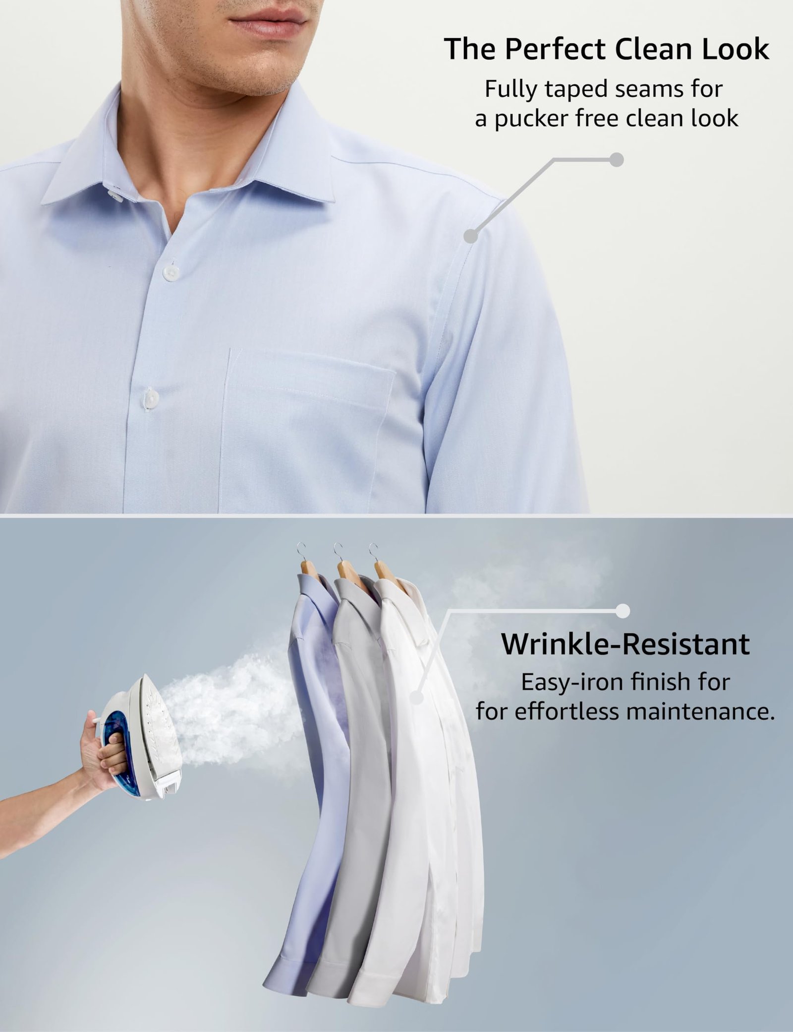 • A solid color formal shirt in twill weave with Wrinkle-Resistant finish