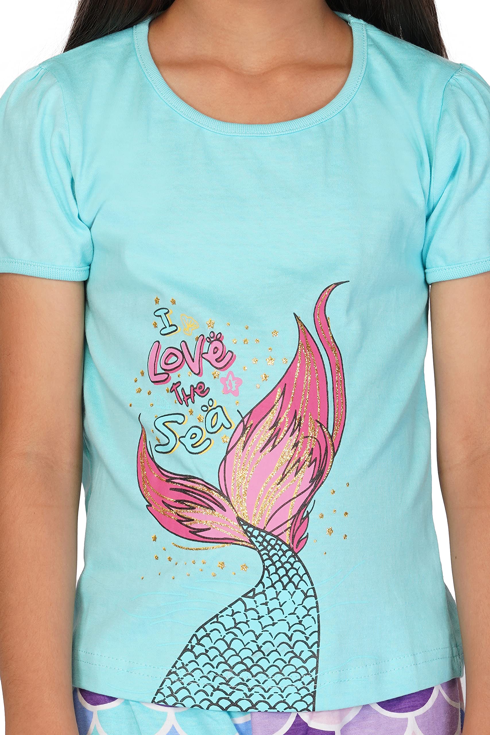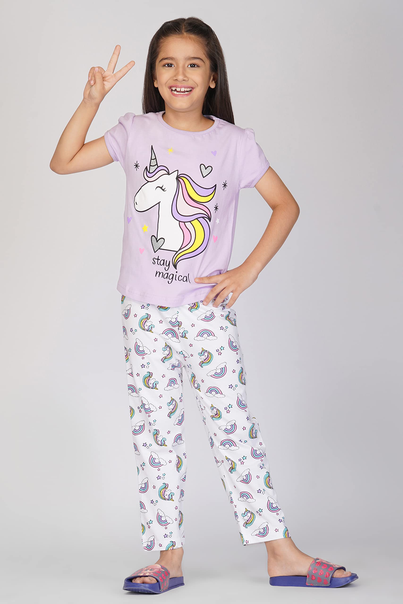 - Eye-catching design: These little girl night dress set t shirt and pant features cute and colorful prints like magical unicorn , mermaid , foxy face on chest and pant that add to its overall appeal, making it an excellent choice for parents looking for sleepwear that is both functional and stylish.Your little one will love wearing it during all day play time or sleep time