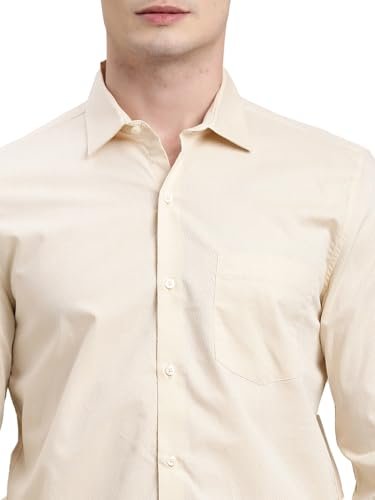 Turtle Men Pure Cotton Slim Fit Dobby Full Sleeve Beige Formal Shirt
