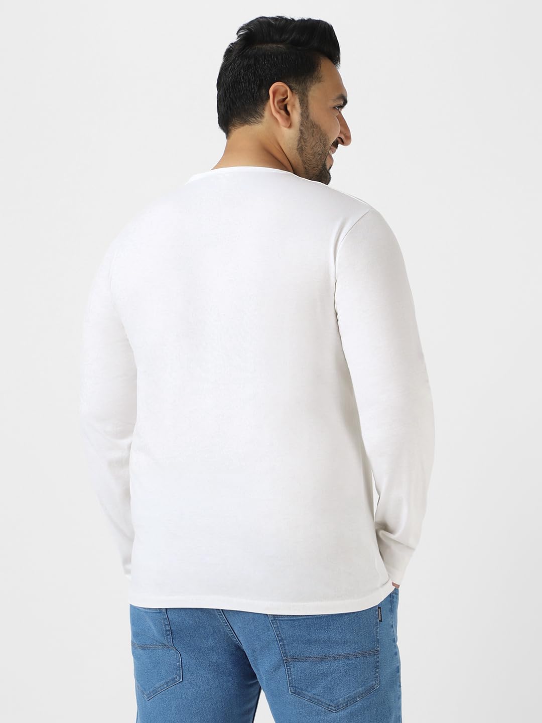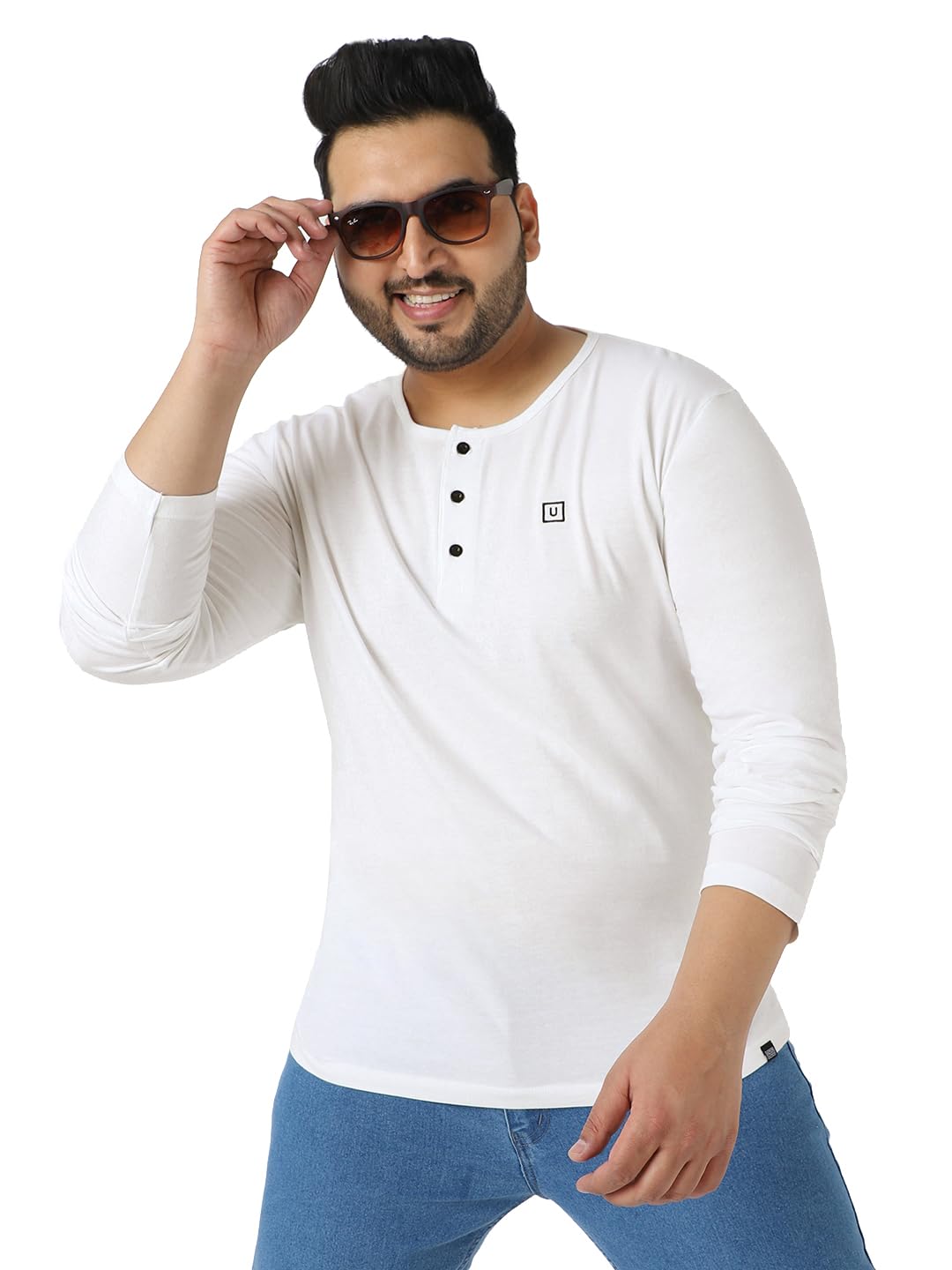Look your stylish best in this trendy new design of men’s Bottle Green solid full sleeve plus size henley neck t-shirt from the latest collection of Urbano Plus. The youthful & fashionable solid design with a smart 3-buttoned henley neck, high-quality & soft 100% cotton fabric, custom fit makes it a must have for your wardrobe. Pair this in-vogue full sleeves t-shirt with any light shade of Urbano Plus jeans or shorts for a fabulous casual look, and never go out of style! So go ahead, stand apart from the crowd and create your own trends. And follow no one else but yourself. Urbano Plus – your go-to stylish and comfortable Plus size brand from Urbano Fashion.