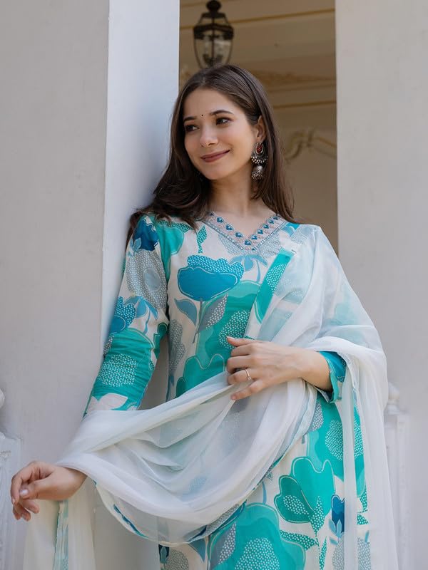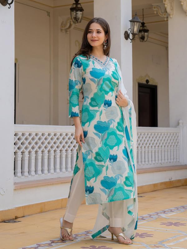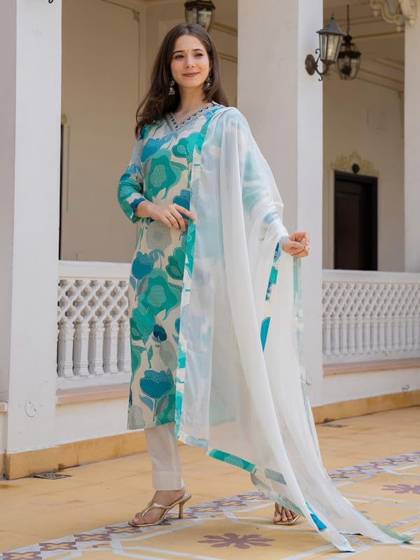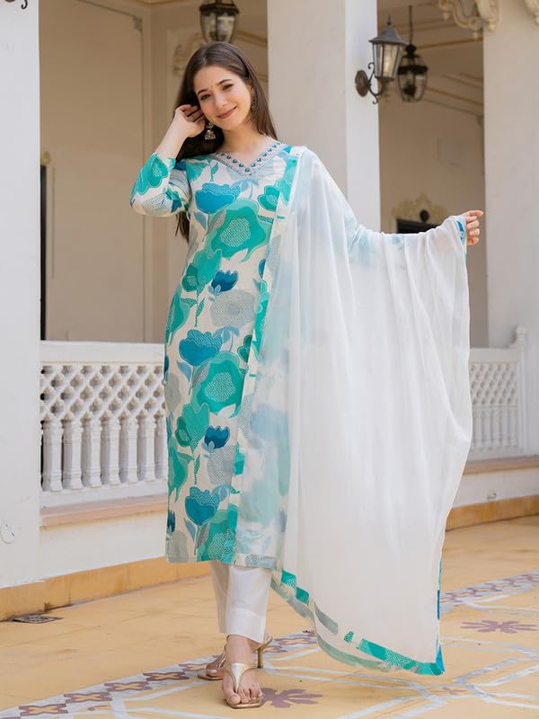 Vaamsi Women’s Floral Straight Printed Kurta Pant With Dupatta Set (VKSKD2206_S_White)