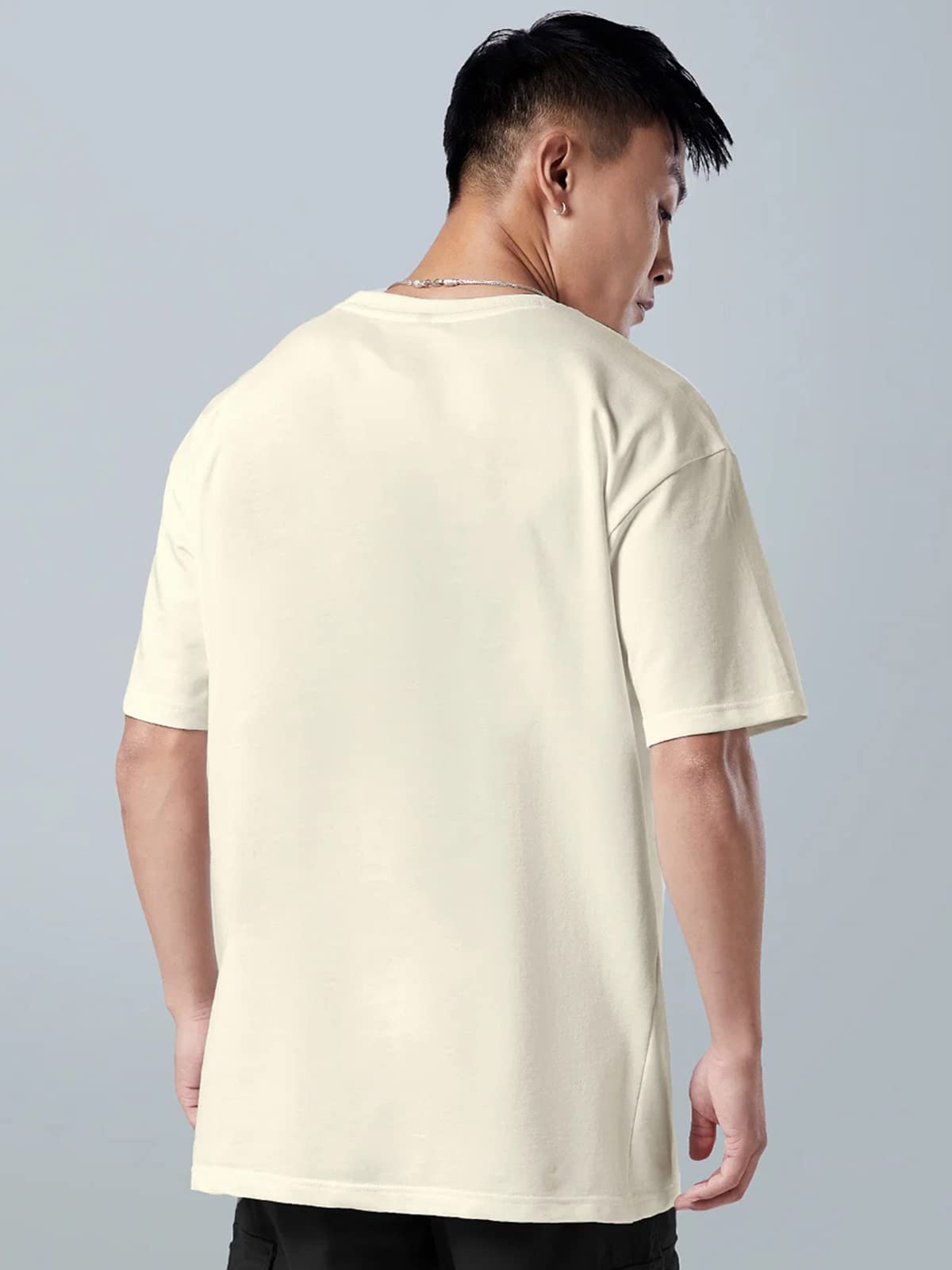 Veirdo® Oversized Baggy Fit Comfortable Pure Cotton Round Neck Drop Shoulder T-Shirt with Graphic Print Collection Tee for Men & Boys (Available in Black, Blue, Beige & Swan White Color)