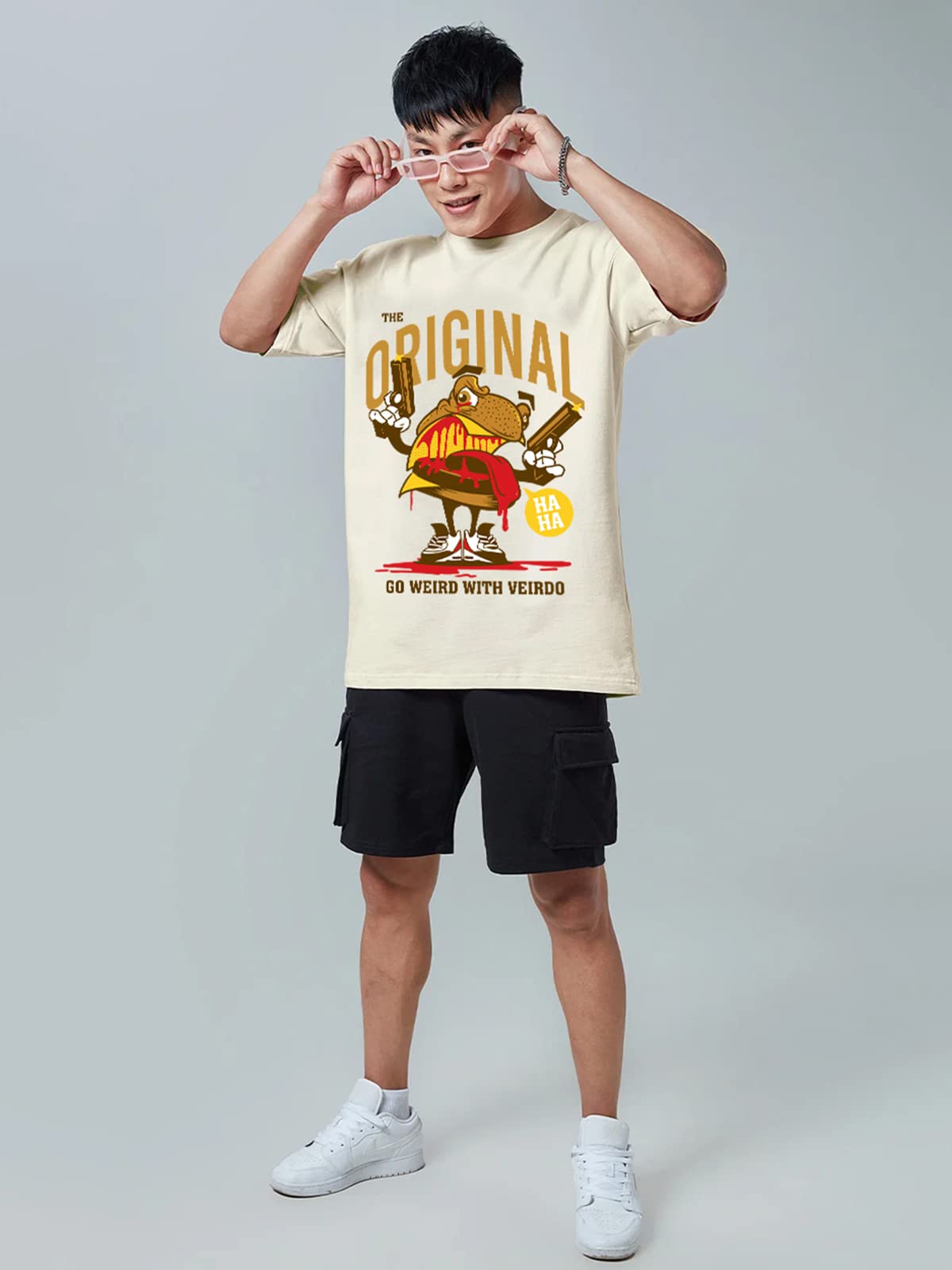 - Veirdo Oversized Baggy Fit Cotton T-Shirt with Graphical Frog and “”Originals”” Chest Print.