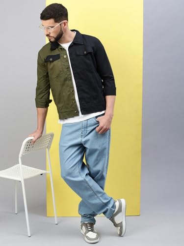 VOXATI Mens Dual Color Denim Jacket kjt2024-l_Multicolor_L