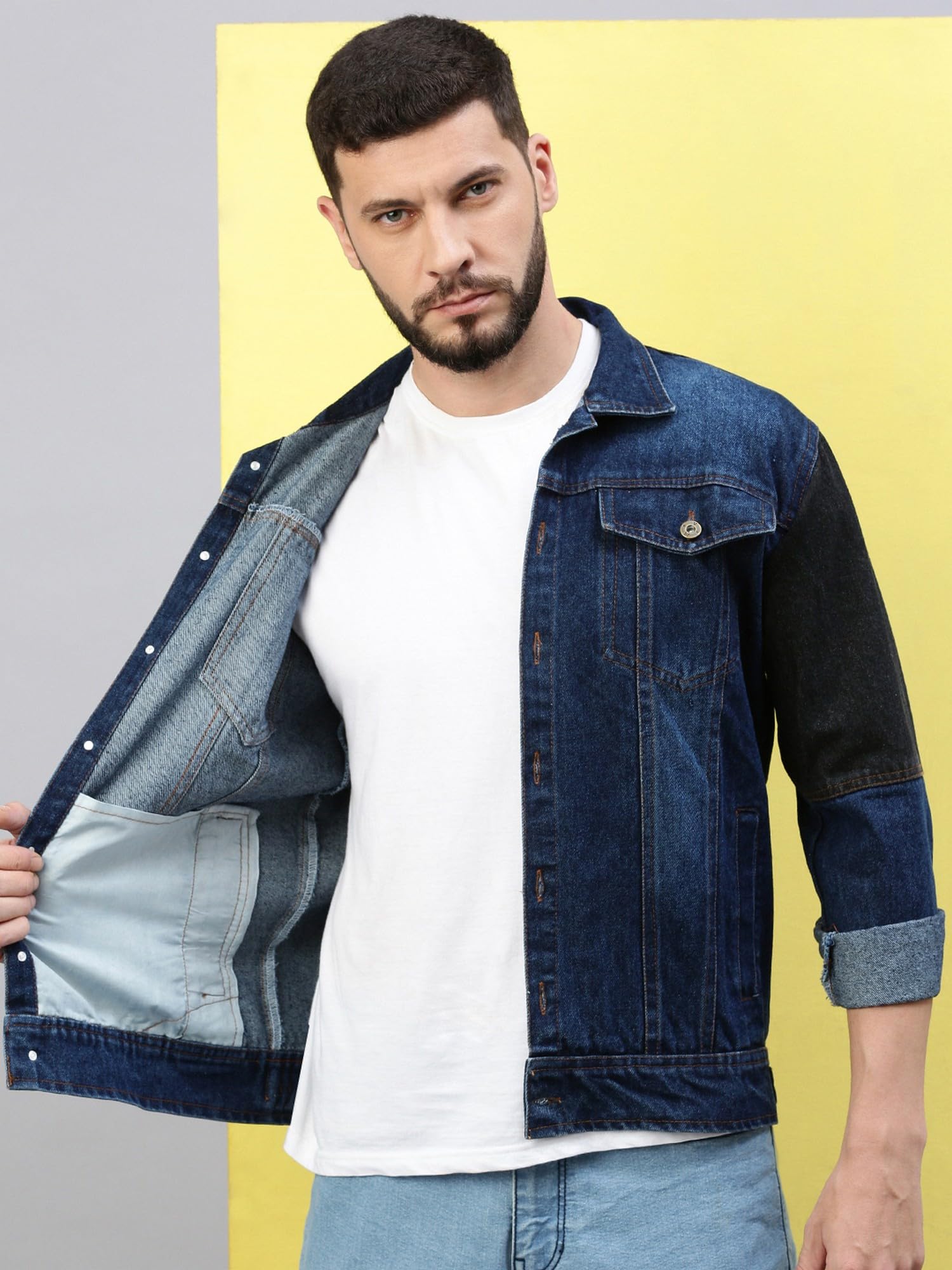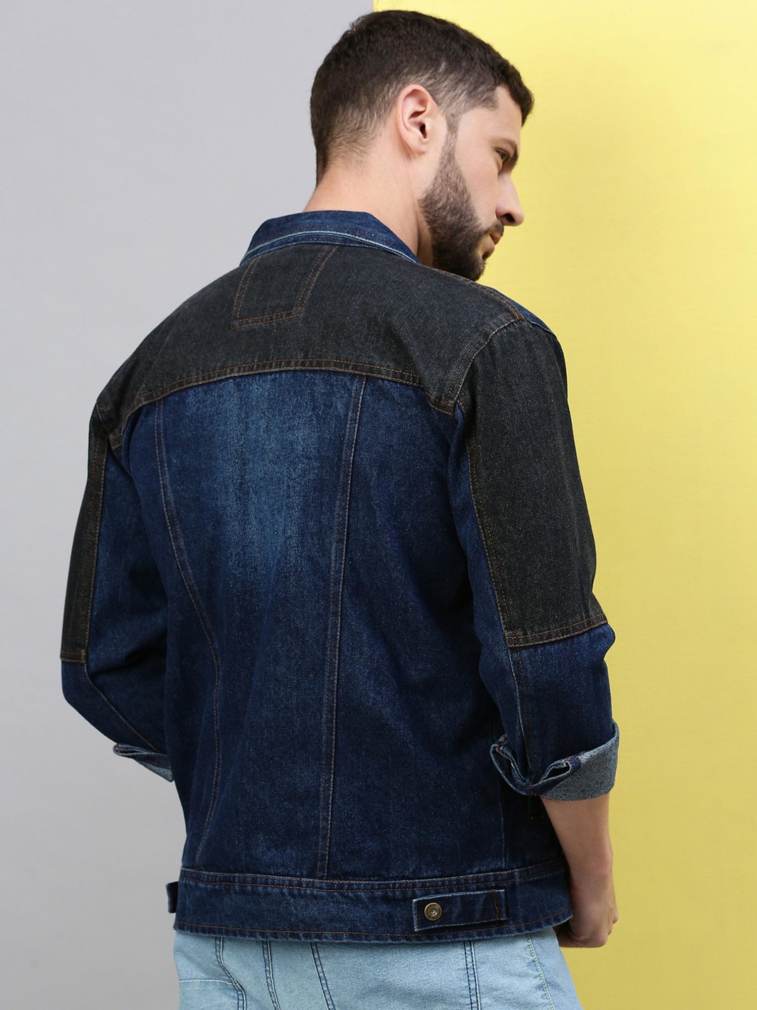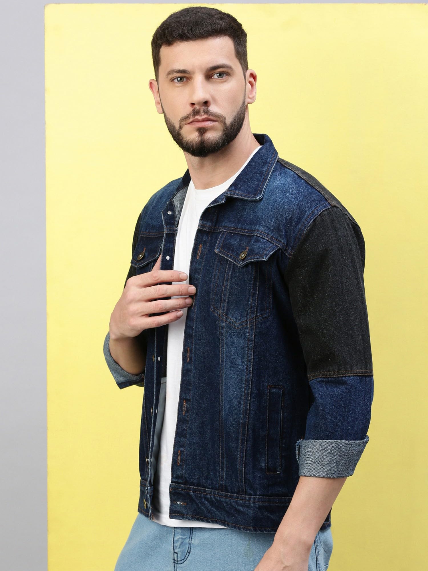 VOXATI Mens Dual Color Washed Denim Jacket kjt4542-m_Multicolor_M