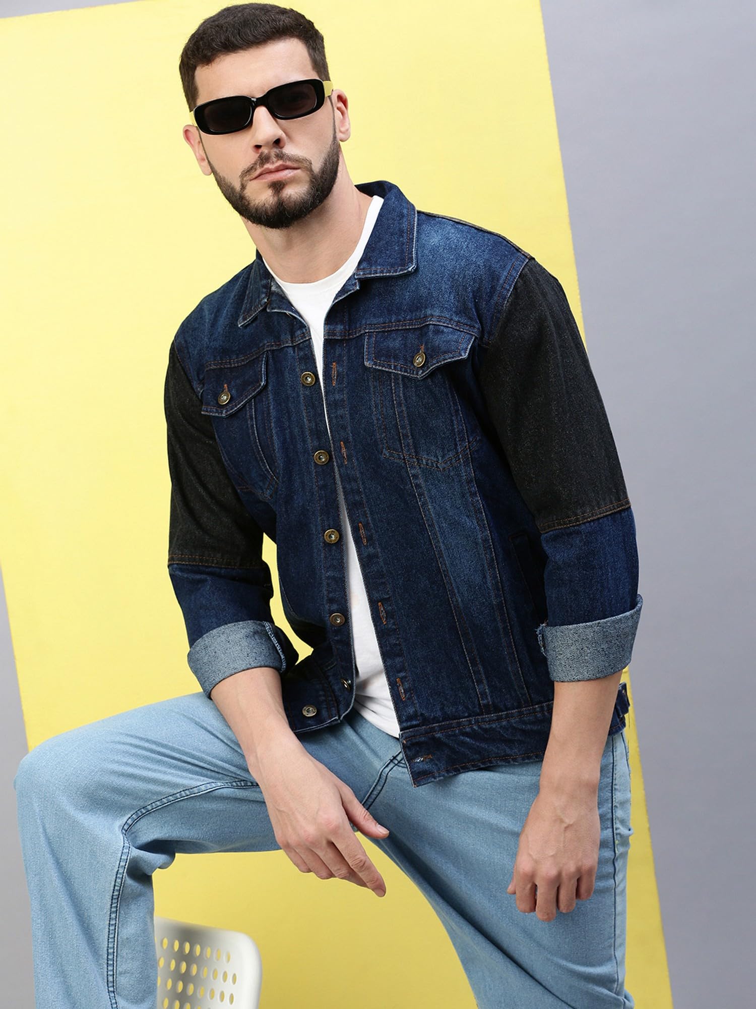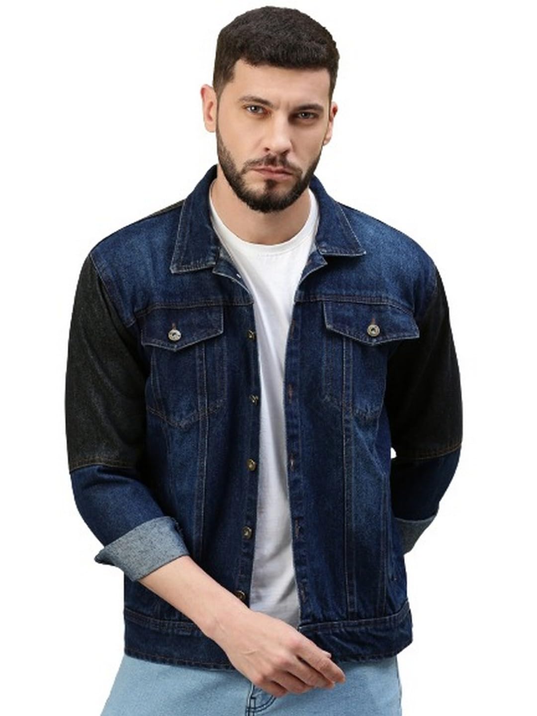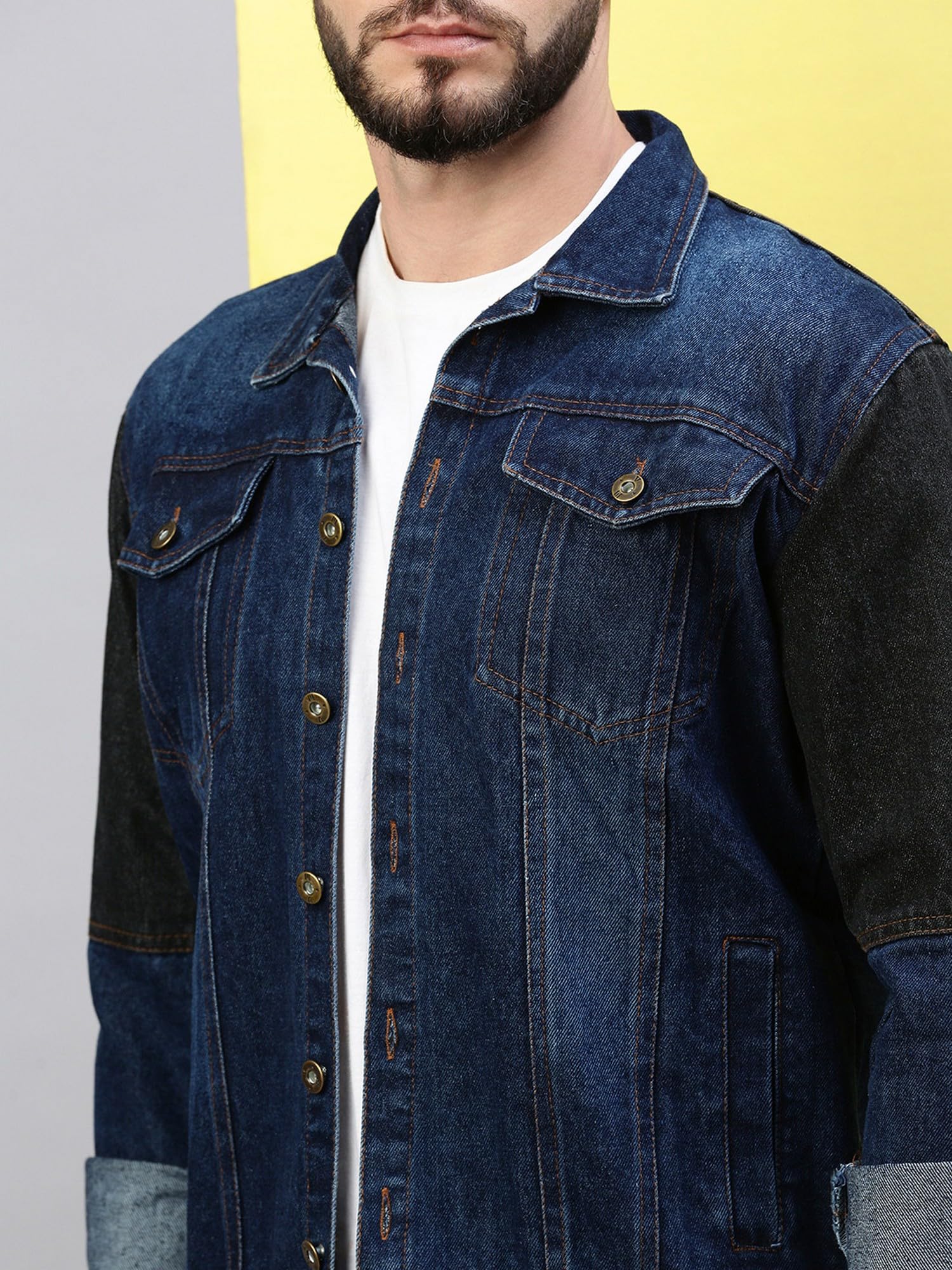 VOXATI Mens Dual Color Washed Denim Jacket kjt4542-m_Multicolor_M