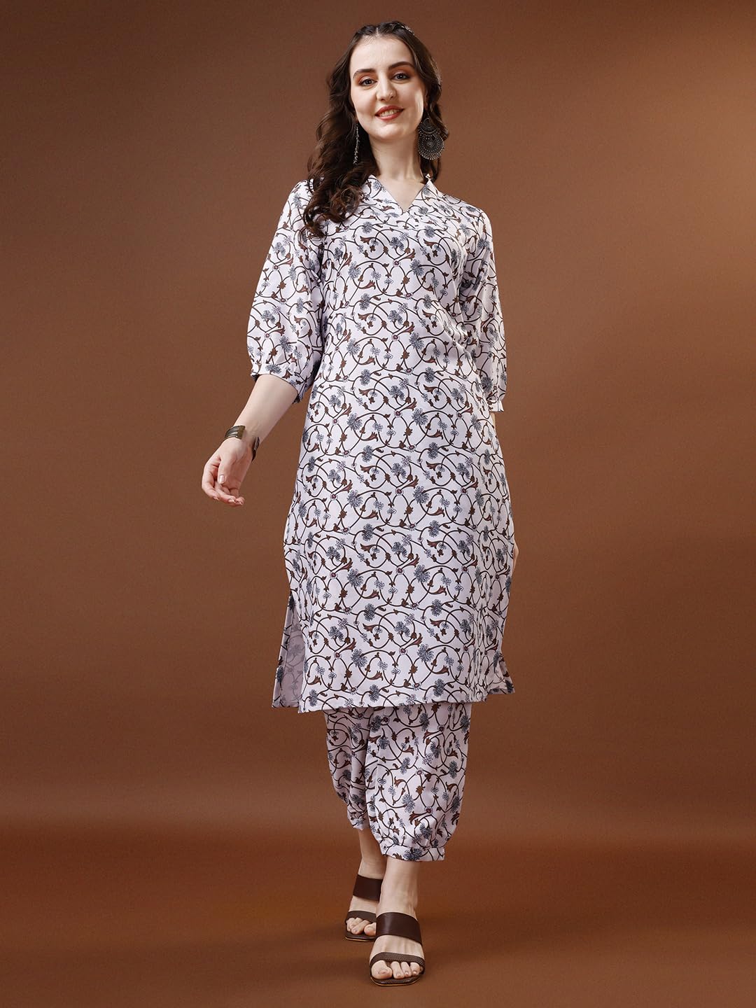 - Style: Straight Kurta ||Knee Length with 3/4 Sleeve||Neck-V- Neck||Pattern-Paisely Print ||