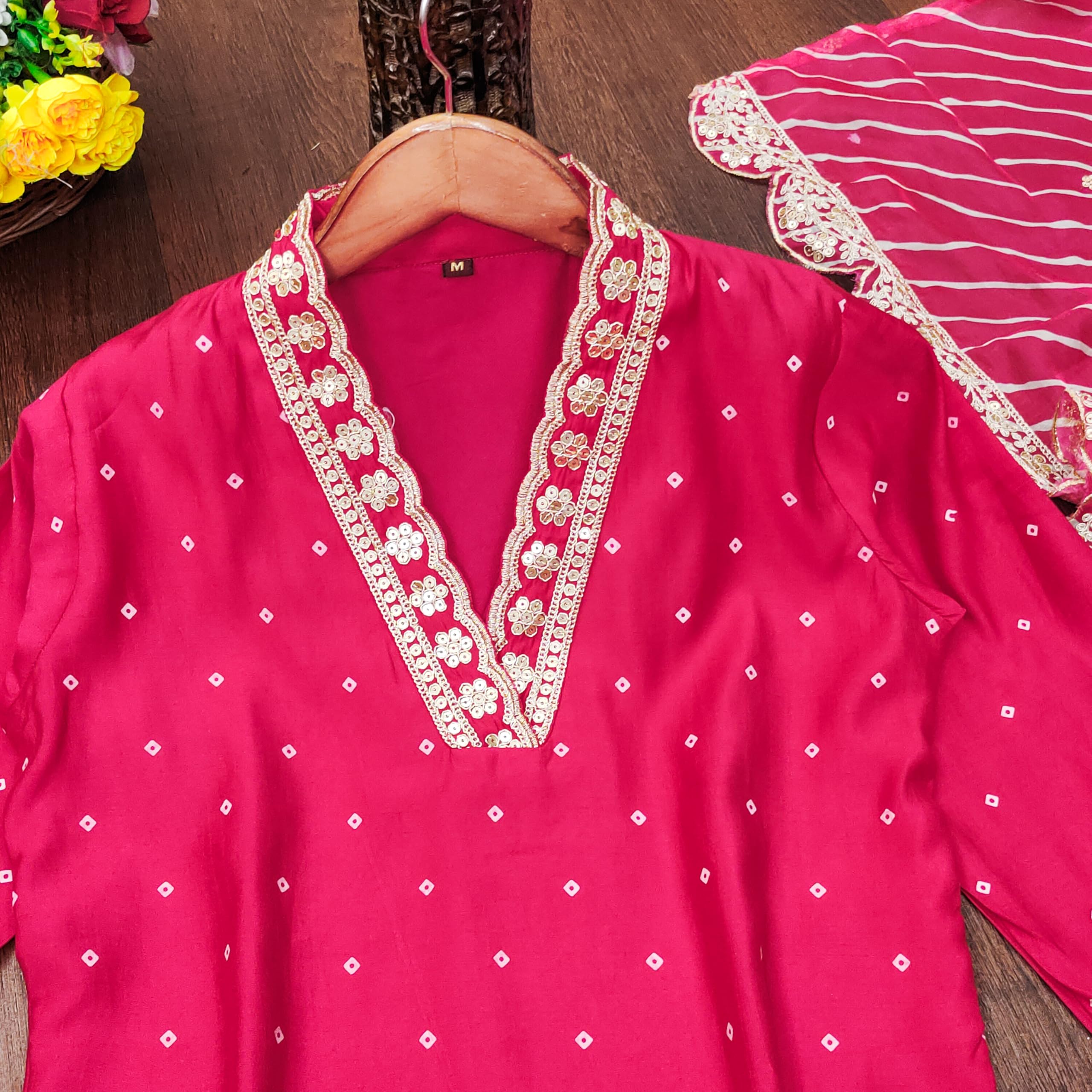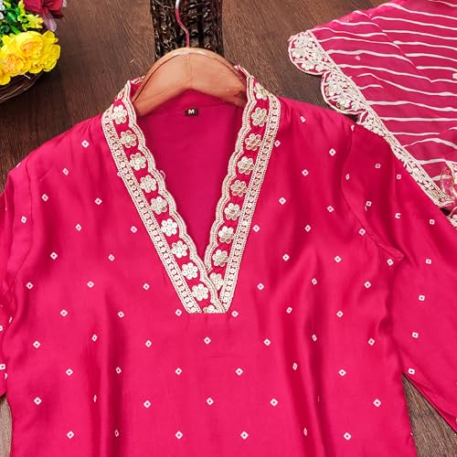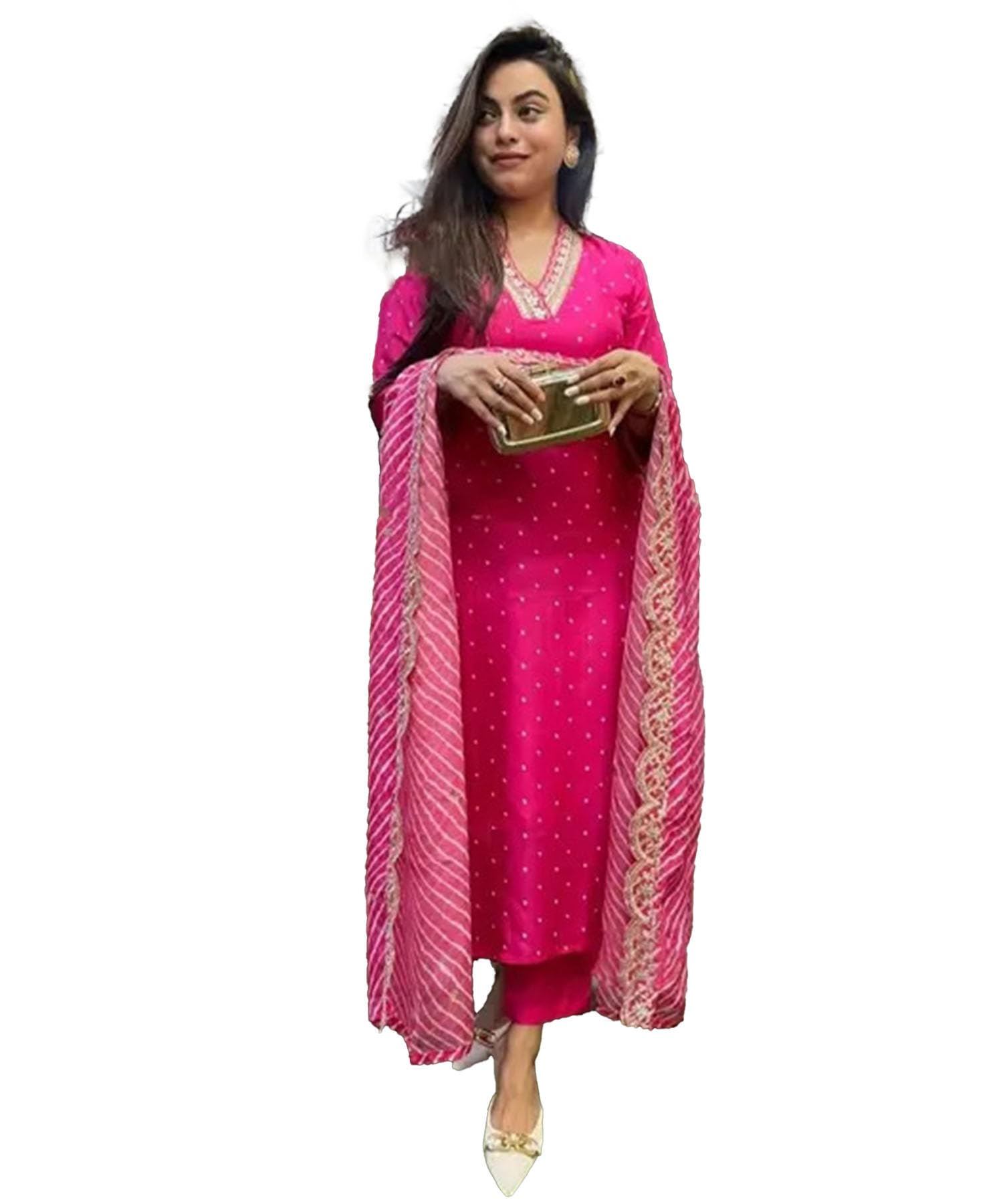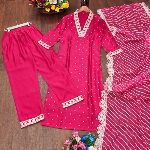 Yashika Women’s Regular Silk Blend Table Kurta Pant Set with Mal Cotton Digital Print Dupatta and Embroidery Work Suitable for Every Indian Occasion (AZ-YS-OG-KS2178-Parent_Pink