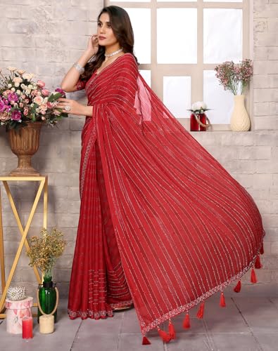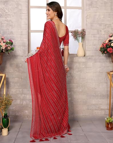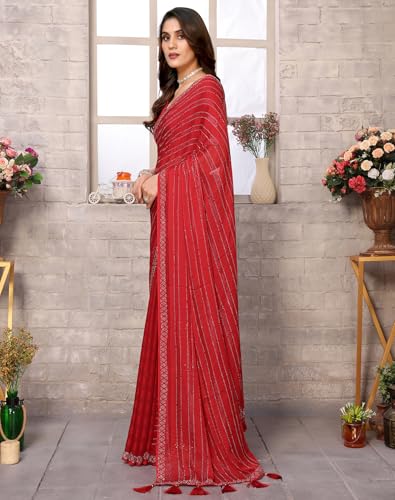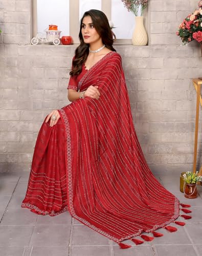 Yashika Women’s Woven Chiffon Latest Black Rangoli Fabric Saree with Lace and Blouse Material (AZ-YS-P1-SWARNA-TANIKSHA-Parent_Red)